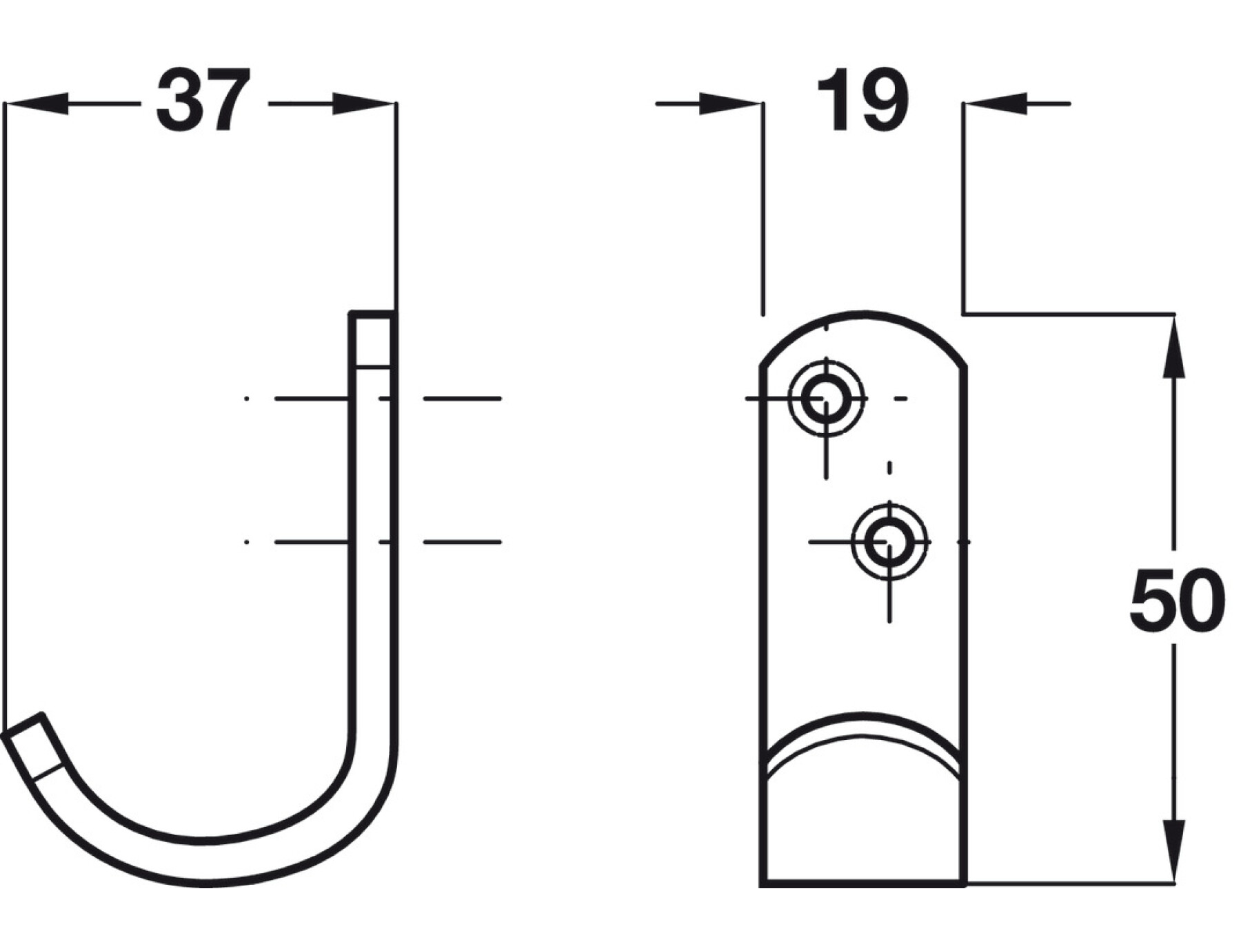 Coat Hook, Aluminium, 37 x 50 mm