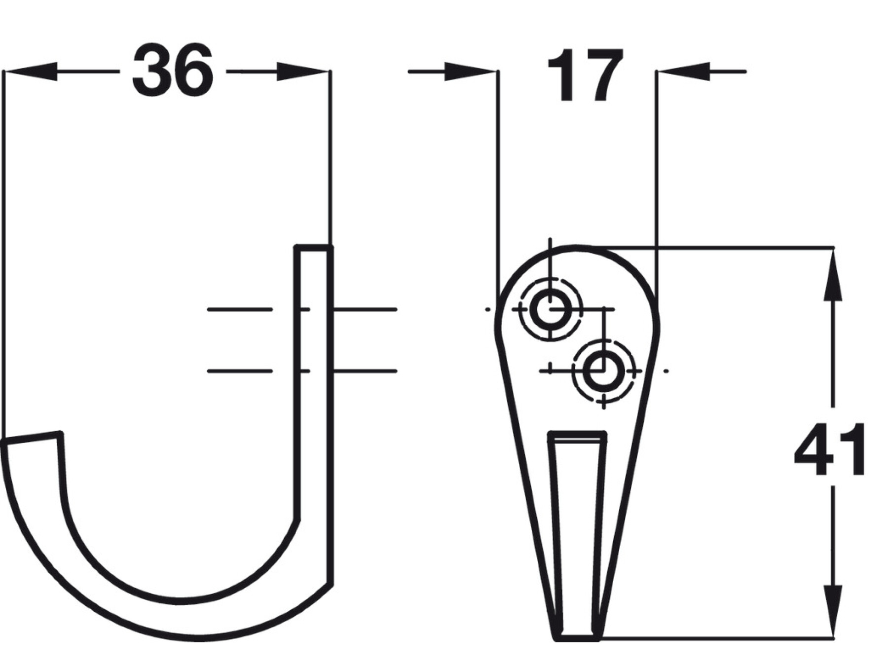 Compact yet impactful, the hook measures 17mm width, 36mm depth, and 41mm height, making it ideal for wardrobes and furniture where space matters. Its decorative application means it works beautifully as a finishing detail on bedroom fittings and furniture solutions.