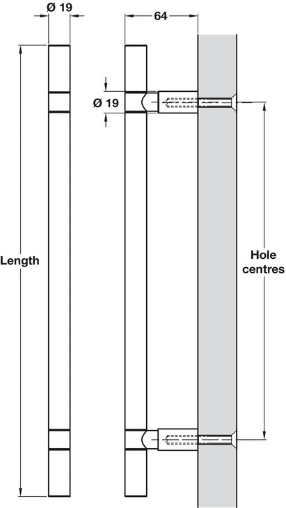 SoftTouch Pull Hdl BT 425mm cc 316 Blk