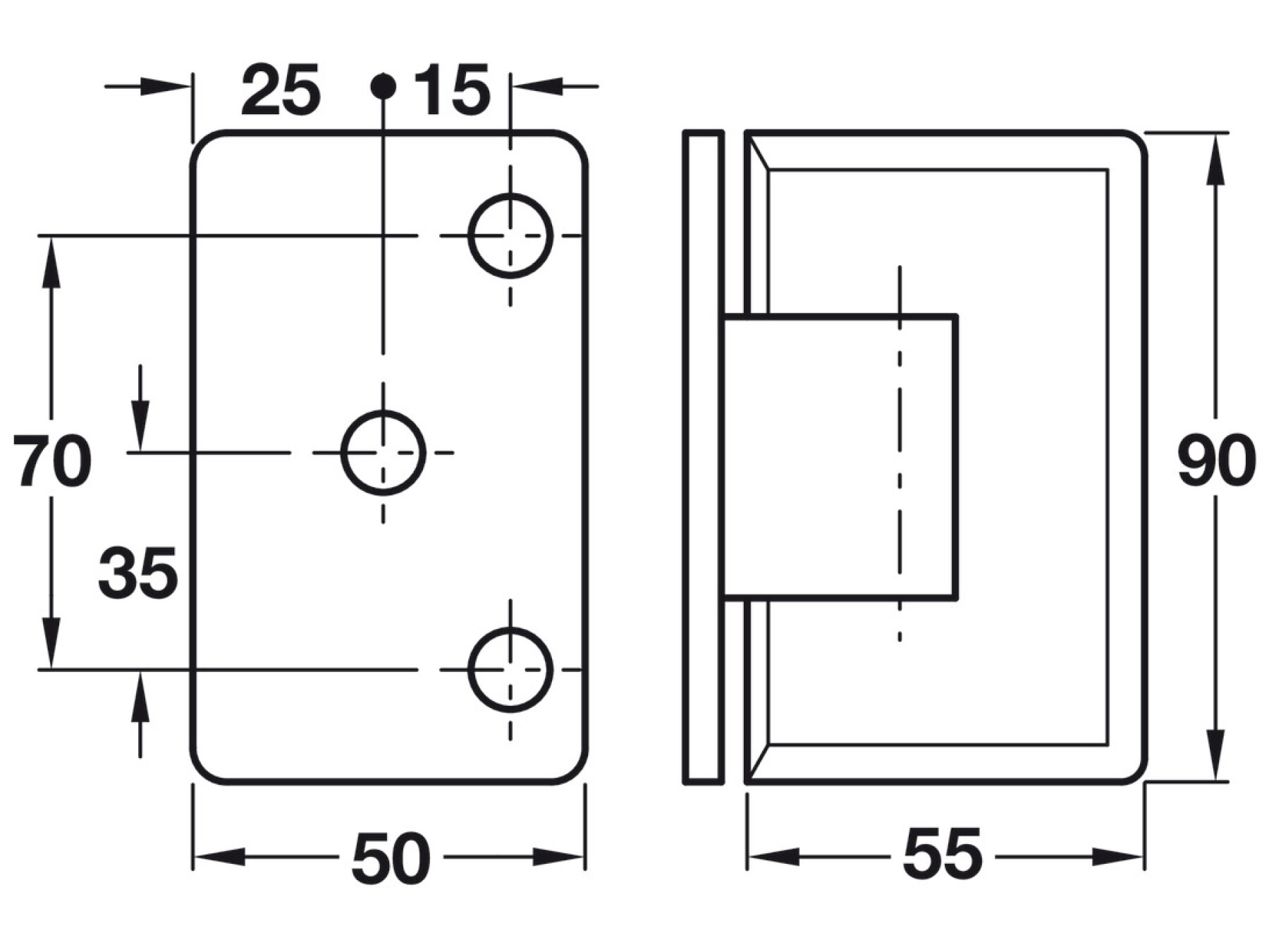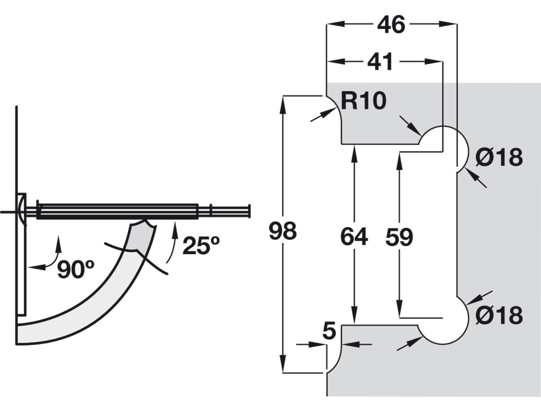 Door closes automatically from 25° from closing point2 pcs required per door
