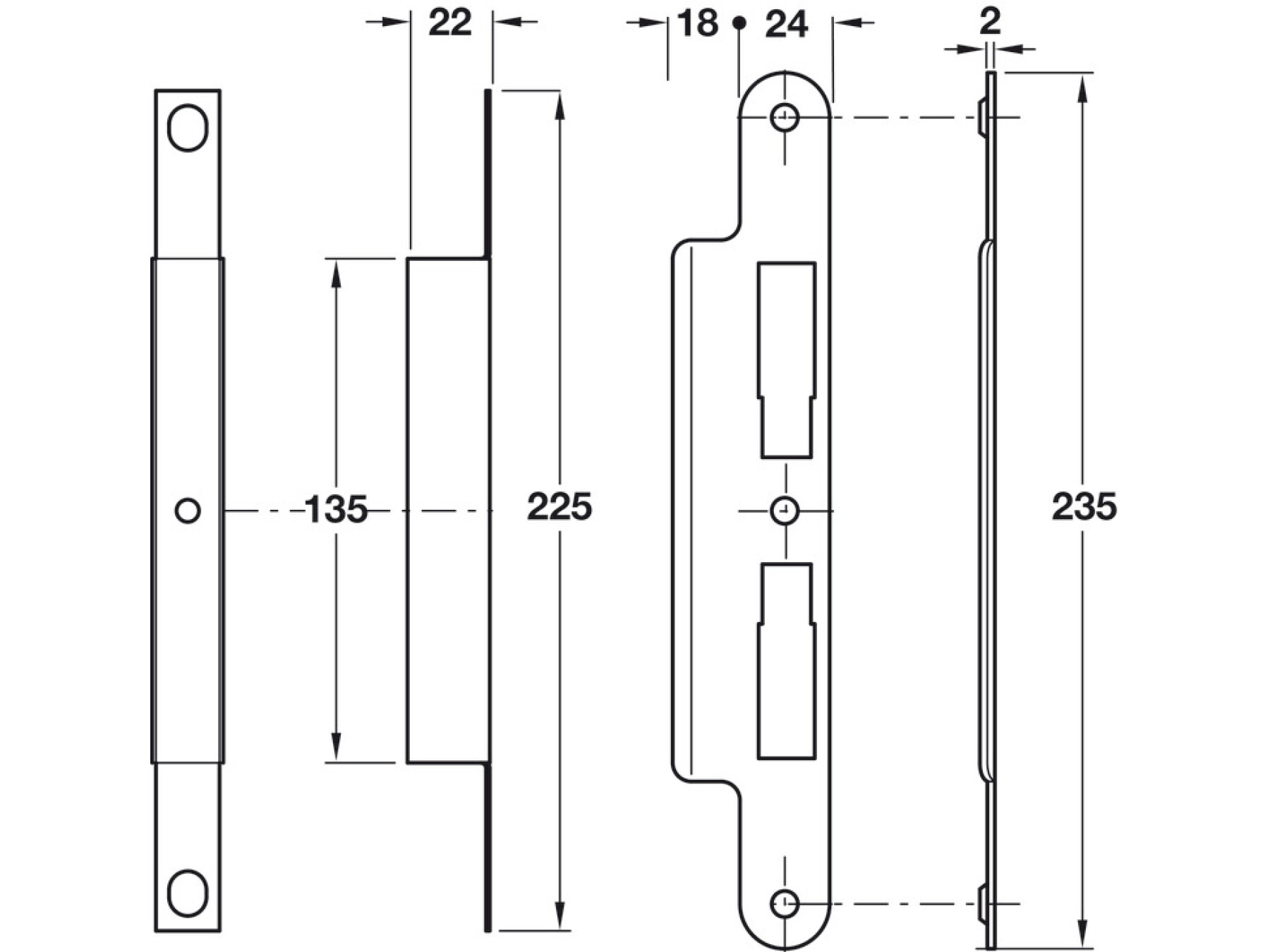 Forend and strike plate: Stainless steel