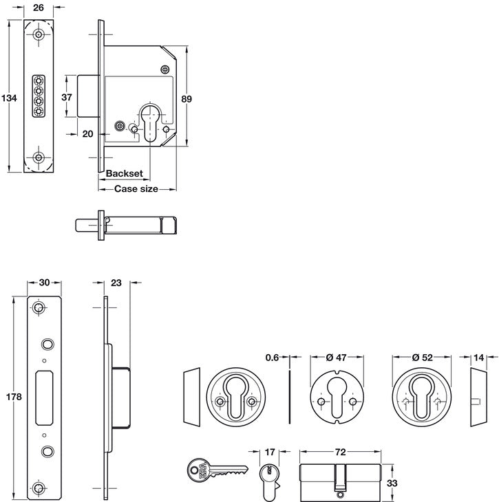 - Supplied with: Keys: 3 includedFixings