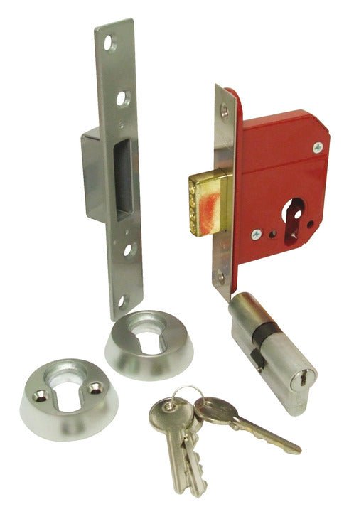 Conforms to BS 3621: 2007Secured by Design: Police preferred specificationDeadbolt operated by cylinderComplete with high security euro profile double cylinder and security escutcheons4 hardened steel rollers in dead bolt, revolves to resist hacksawingCase: Anti-drill plates on both sides of lockStrike plate: Box typeDeadbolt: Brass-plated. 20 mm throw