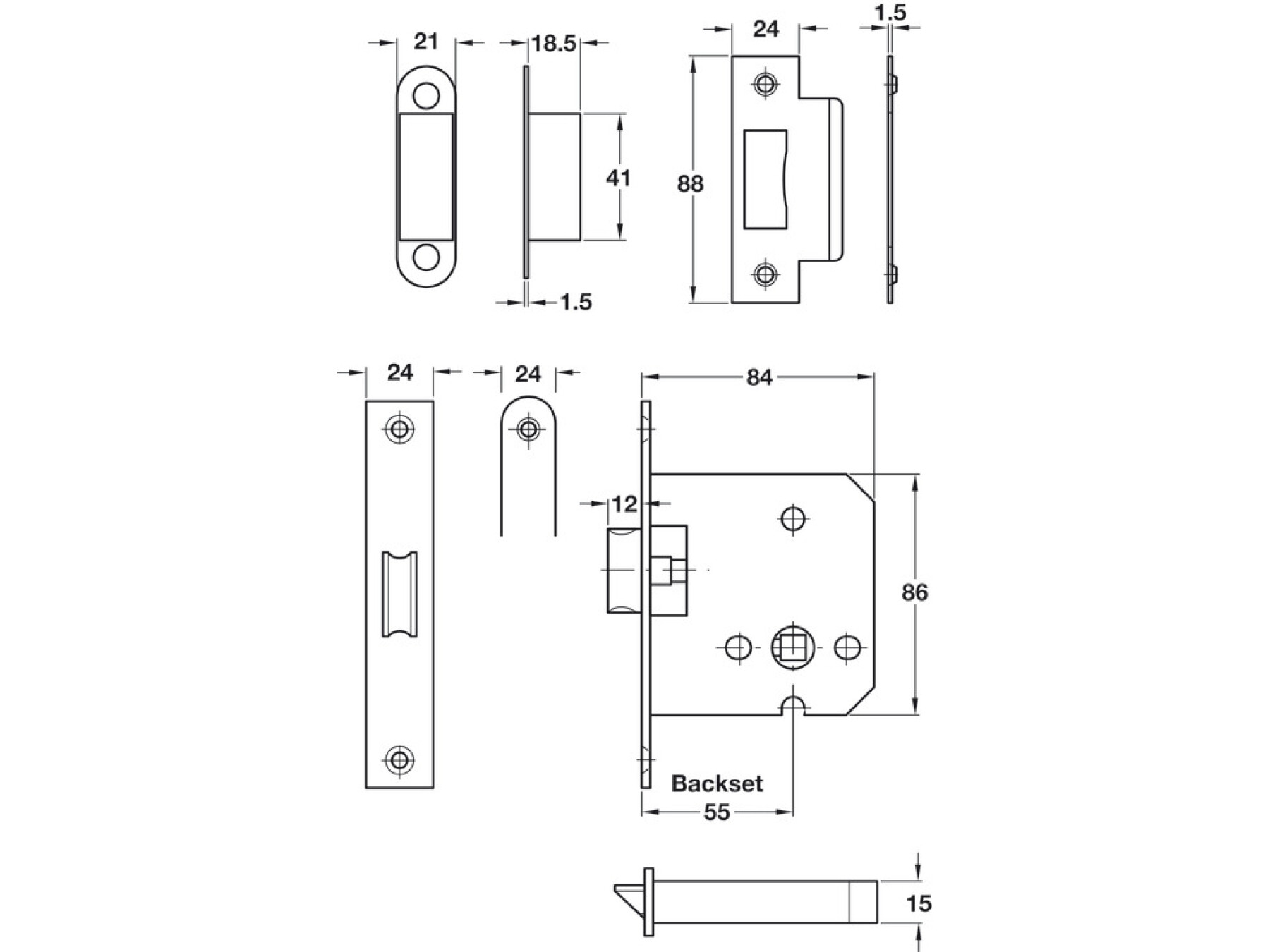 Latchbolt operated by lever handles, reversibleForend: SquareFlanged strike plate: Square, flatLatchbolt... Read More