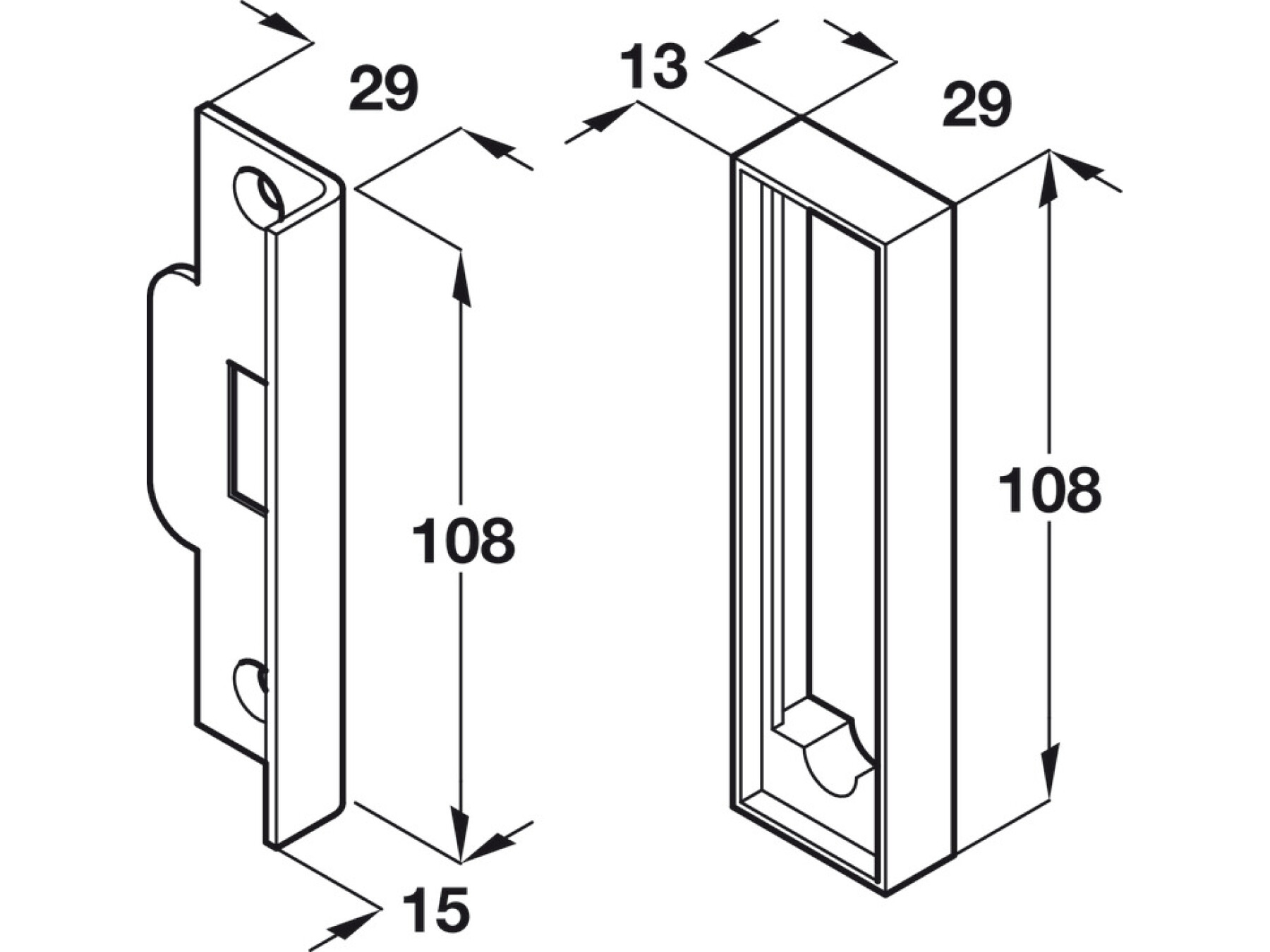 To suit mortice box latches, Cat Nos. 911.23.264/265/564/565