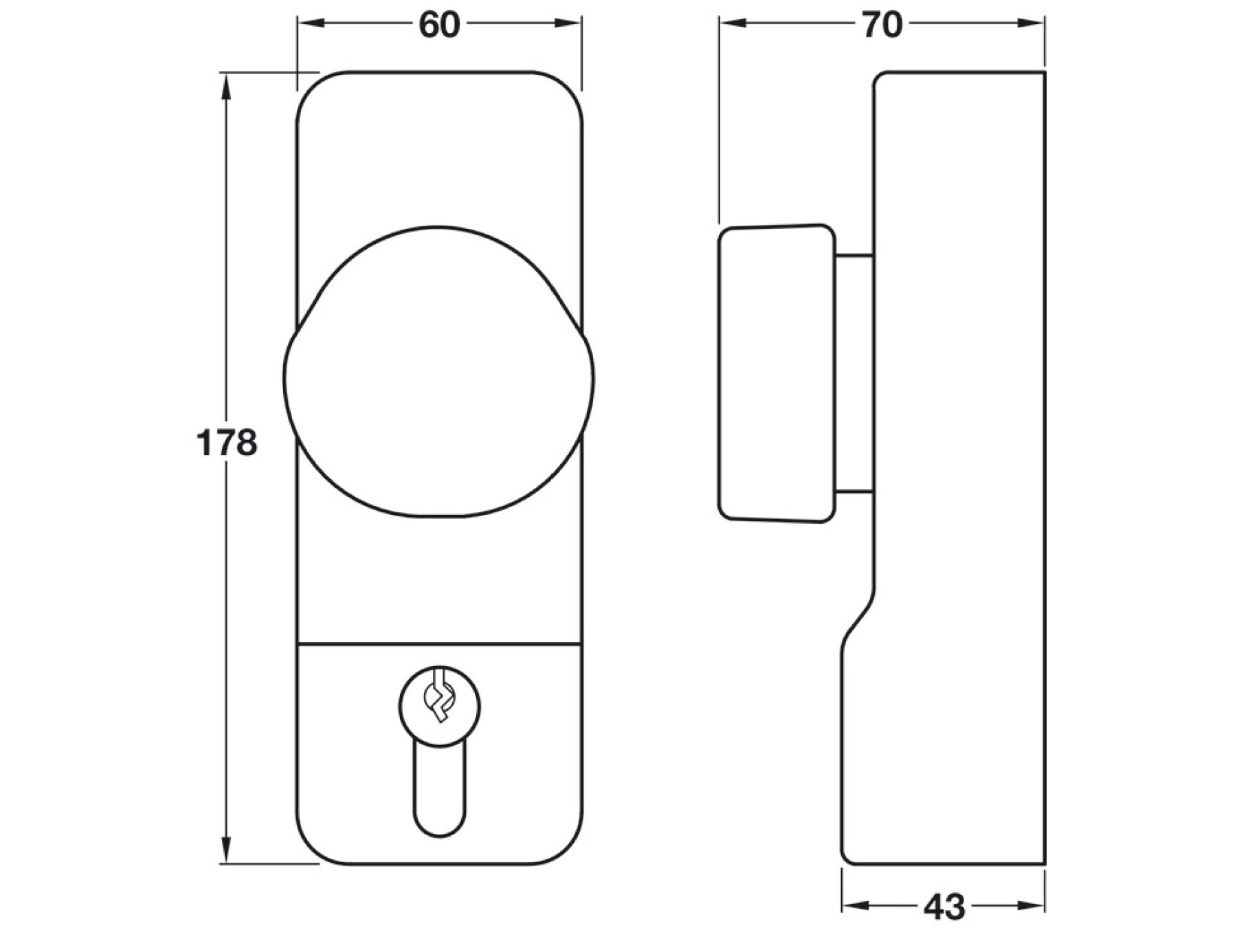 Outside Access Device, for use with Panic Exit Devices, 178 x 60 mm, Diecast Alu