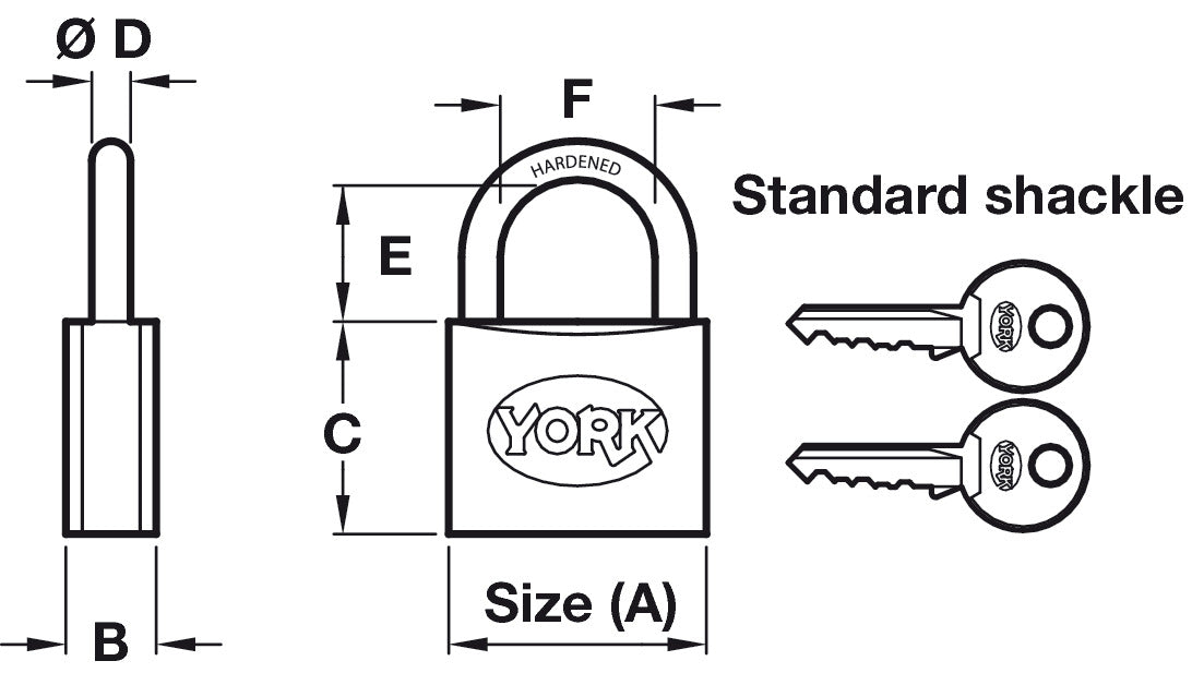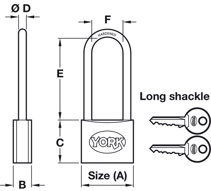 2 point locking2 keys includedStandard key sectionStandard and long shackle versionsPlease see cat. page for additional padlock dimensions