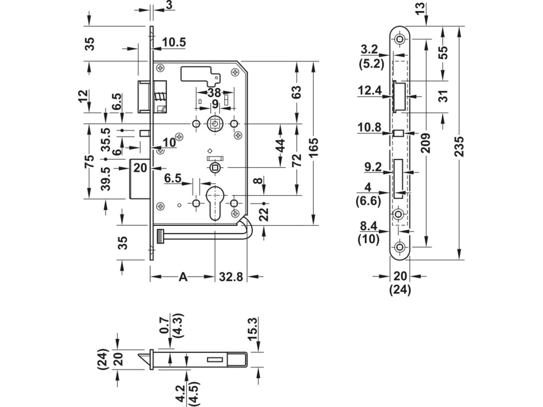 Latchbolt and lock case: Steel