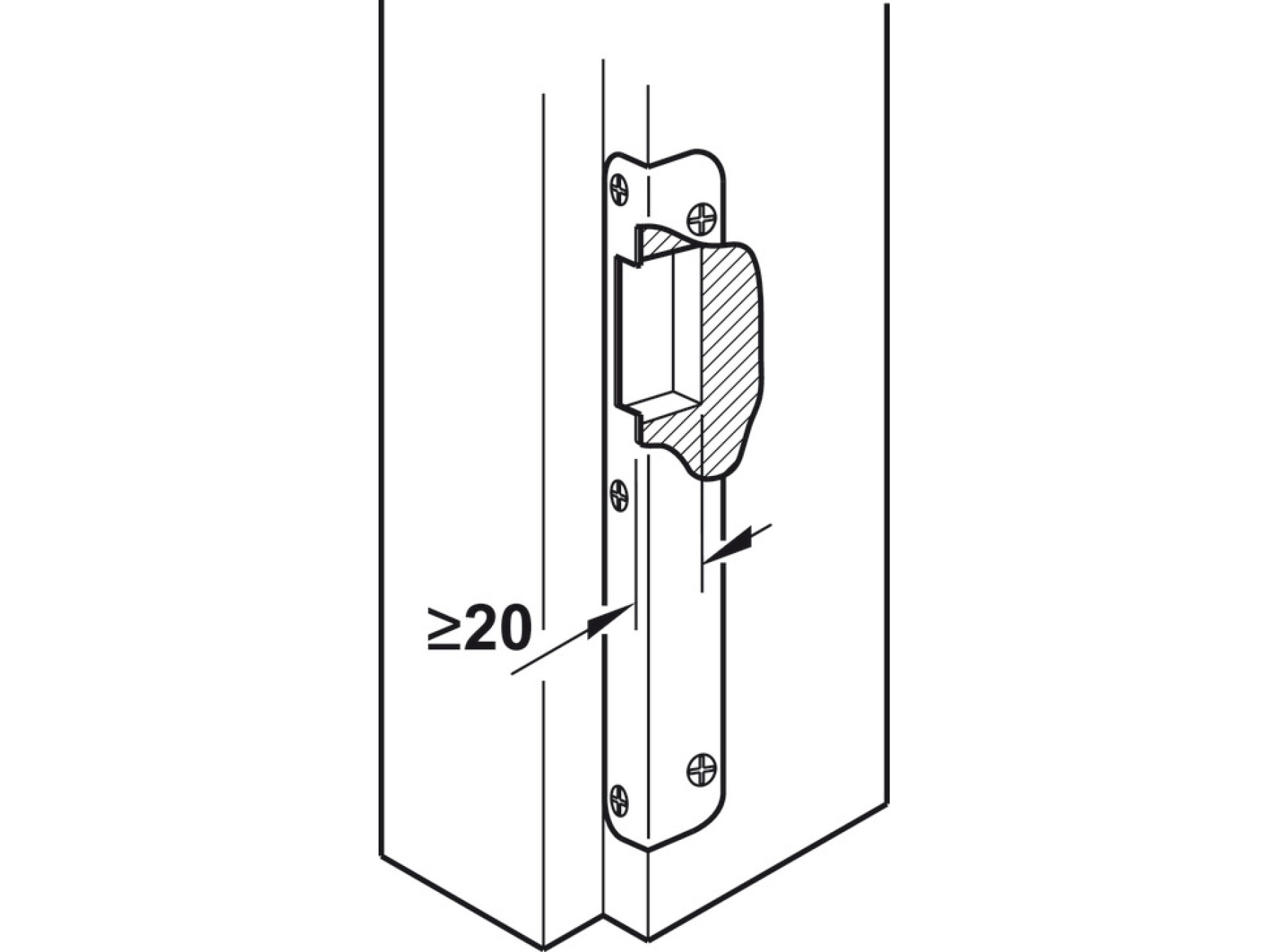 1x Flanged striking plate, satin stainless steel