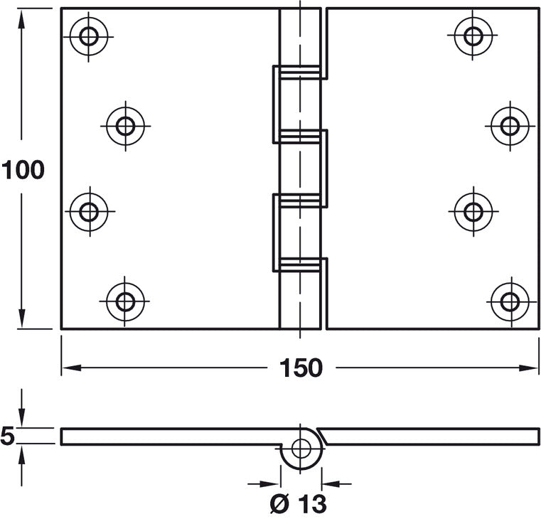 Butt Hinge Proj DPBW 100x150mm Brs SC