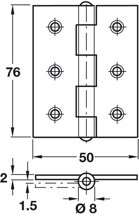Butt Hinge Plain Sqr 76x50mm 304 SSS