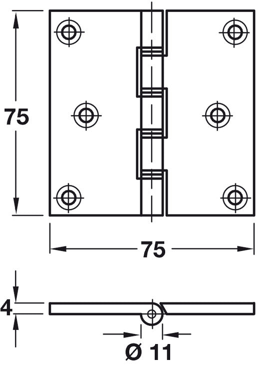 Butt Hinge Proj DPBW 75x75mm Brass SC