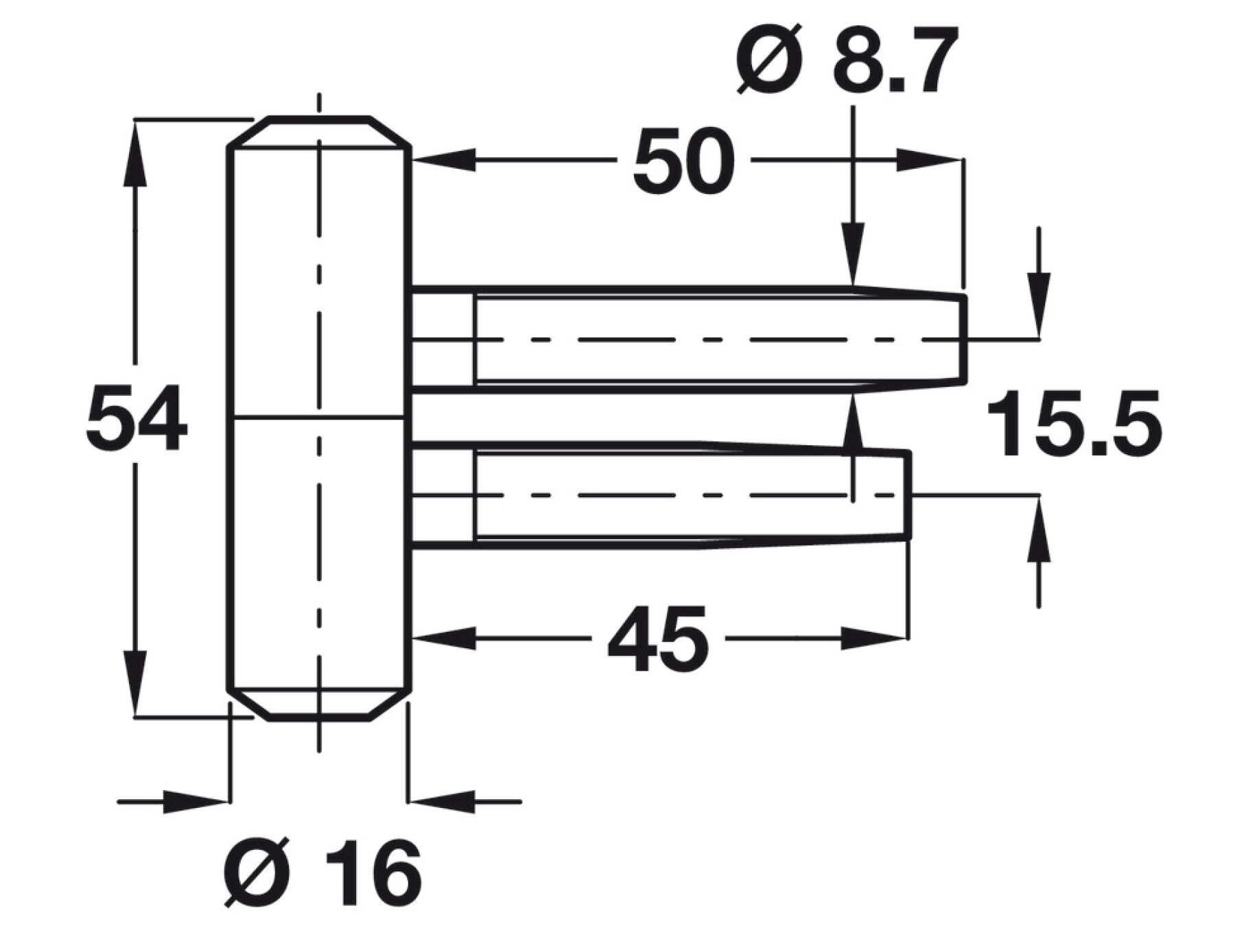 Startec Drill-In Hinge D16x54mm Galv Wht