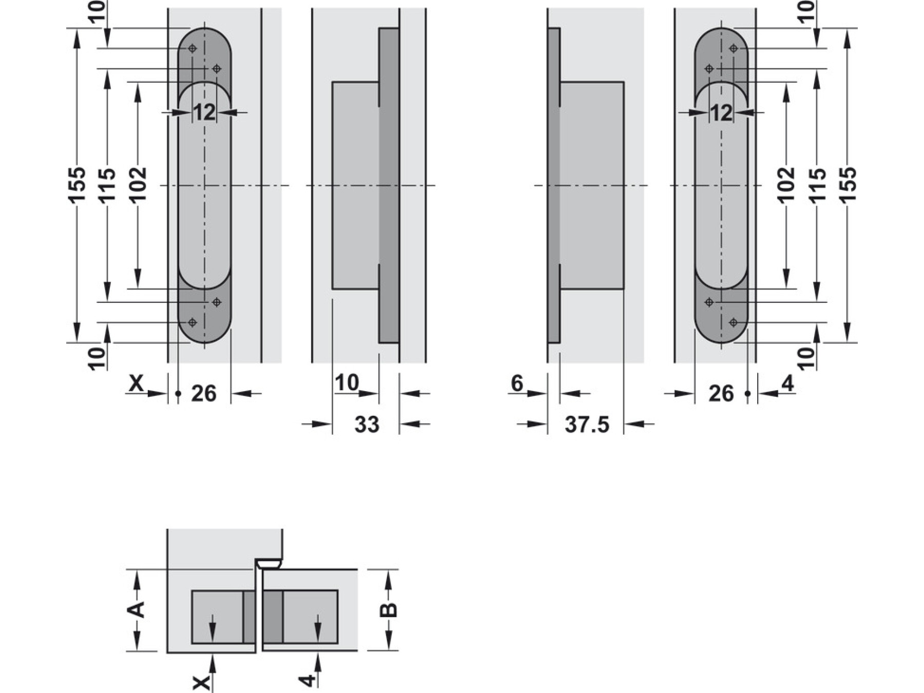 For wooden, steel or aluminium frames, for flush doors