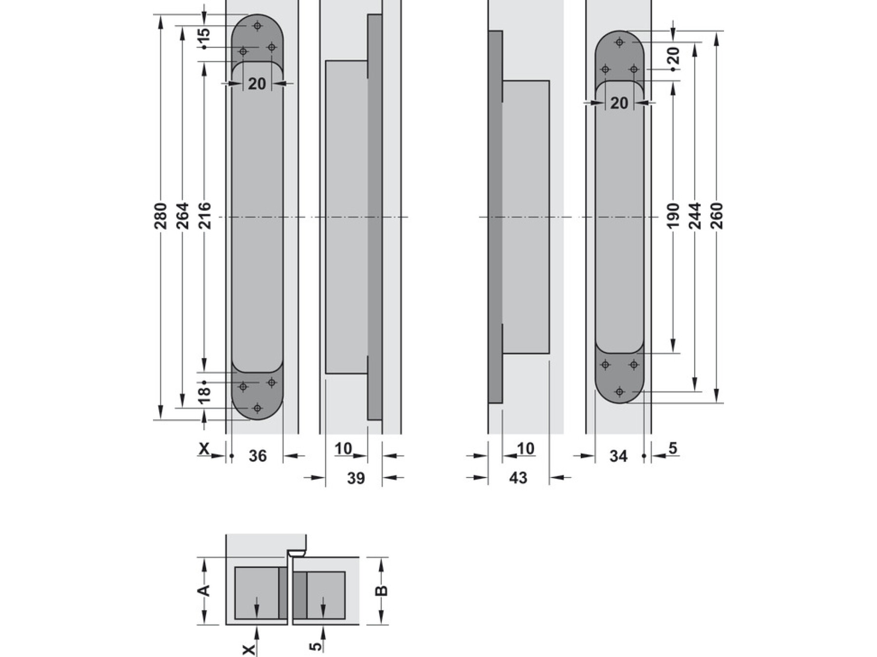 280 mm / 260 mm