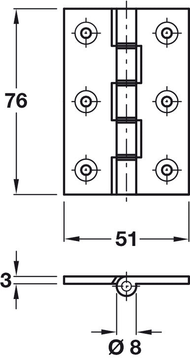 Butt Hinge DPBW D8x76x51mm Ext Brs SN