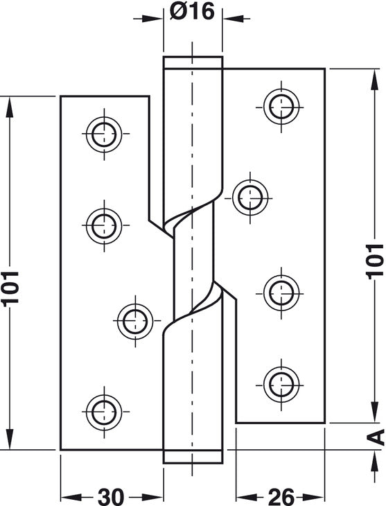 Butt Hinge Rising 102x76mm CW 304 SSS