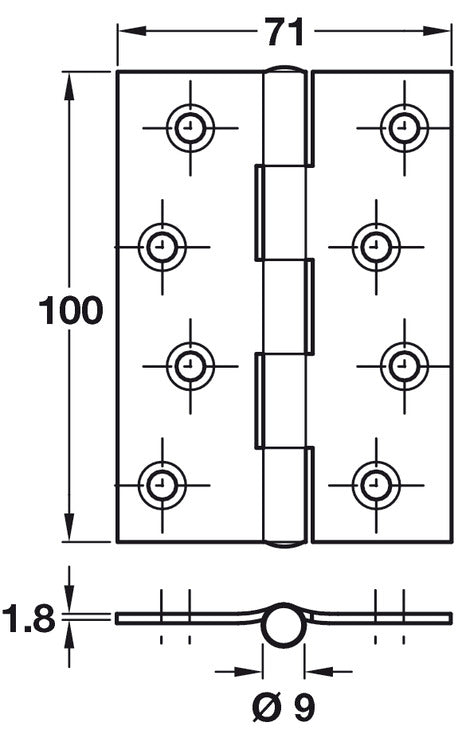 Butt hinge steel 100mm BZP - M/pack 10