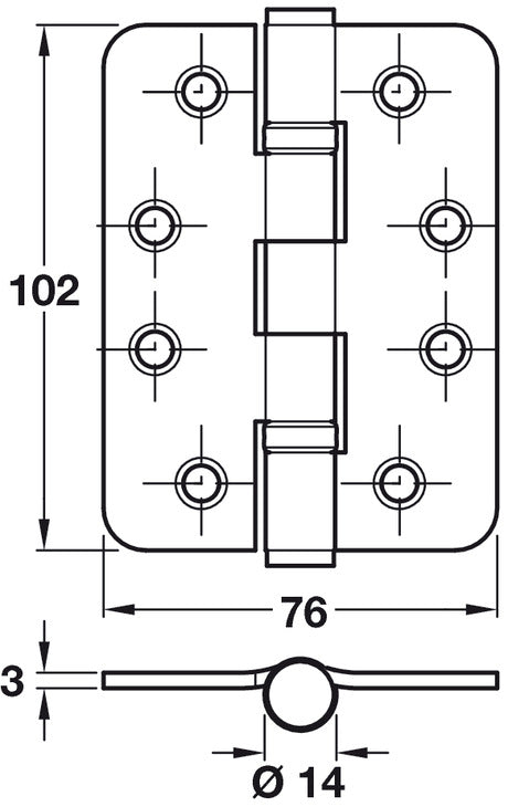 Butt Hinge BB Rad 102x76mm 201 PSS