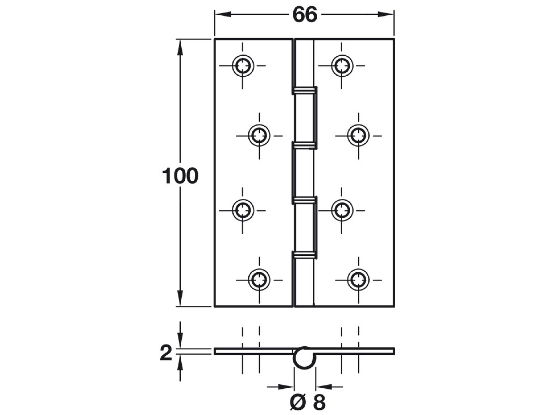 Butt Hinge DSSW Sqr 100x66mm SS SSS