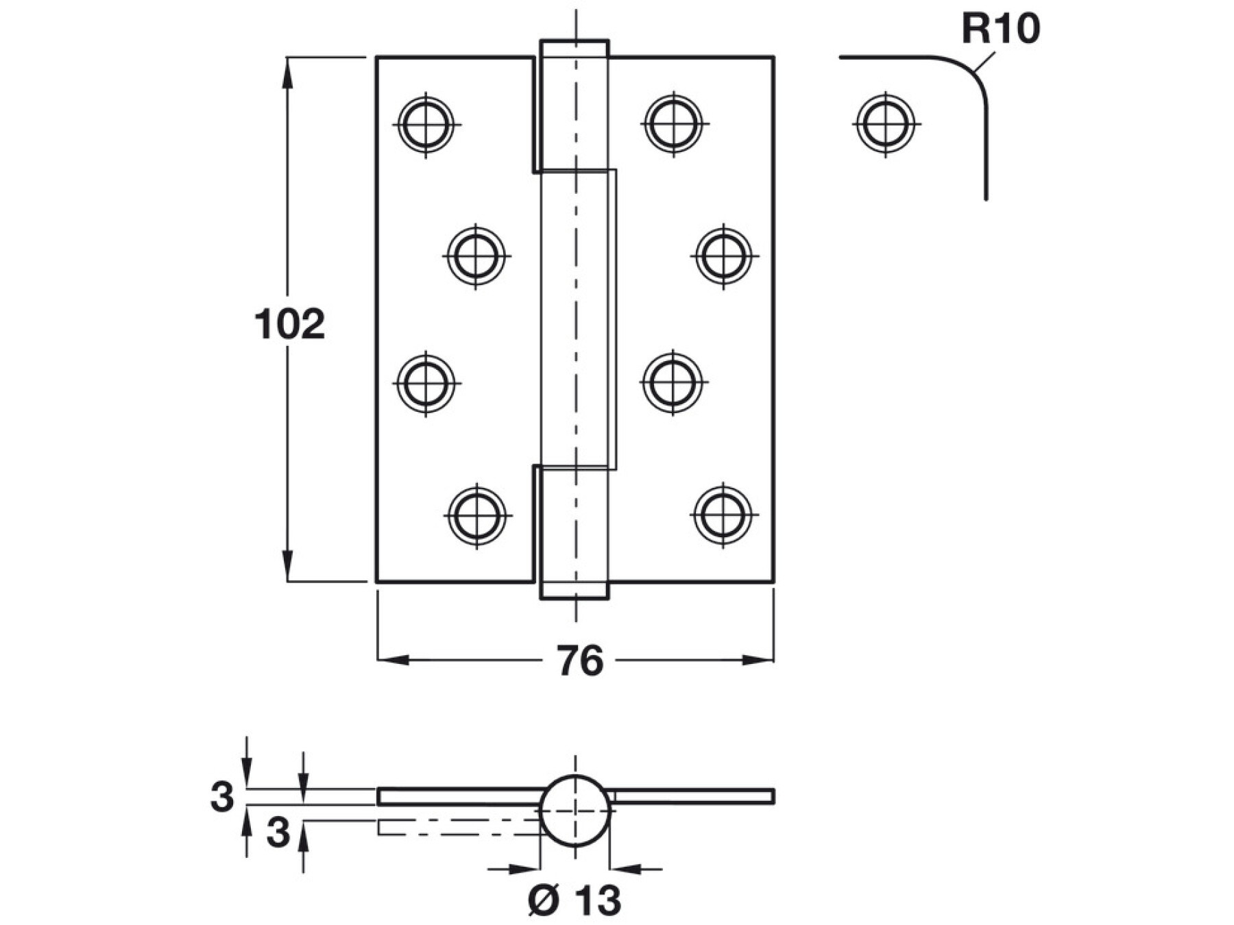 Butt Hinge Rising 102x76mm ACW 304 SSS