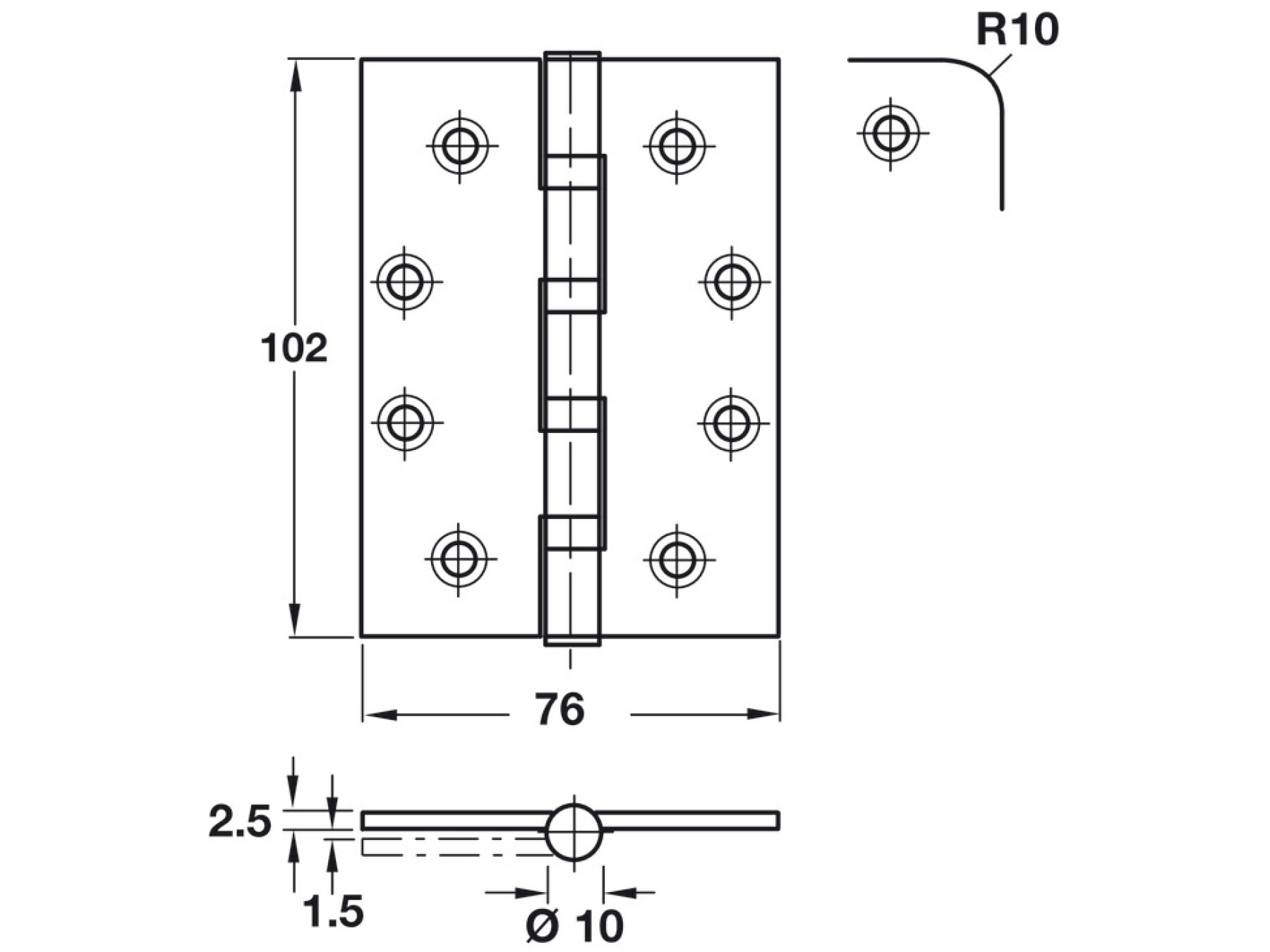 Butt Hinge, 102 x 76 mm, 304 Stainless Steel, Phoenix Slimline