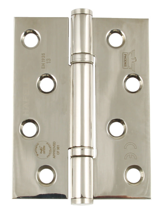Grade 12 BS EN 1935. Maintenance free 25 year performance guarantee. Certifire approved; certificate no. CF351 mins 3 knuckle hinge with fixed pin and shrouded bearings
