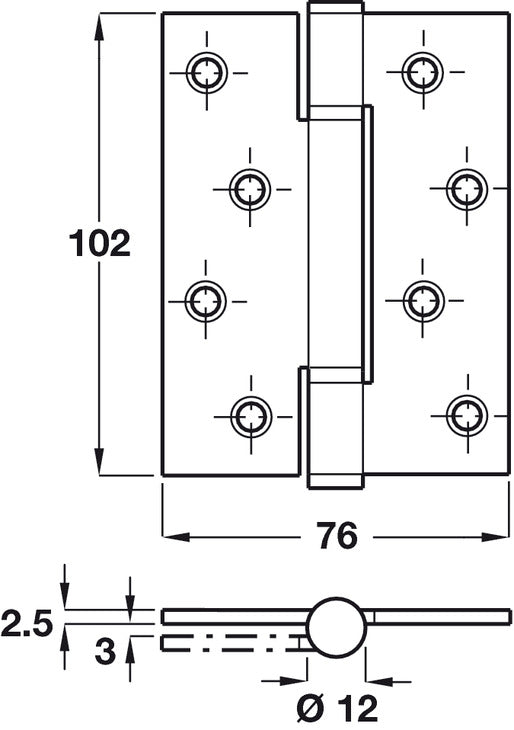 Phoenix Butt Hng 3 Sq 102x76mm St SN