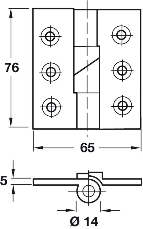 65 mm - : Right hand hinge, anti-clockwise closing direction