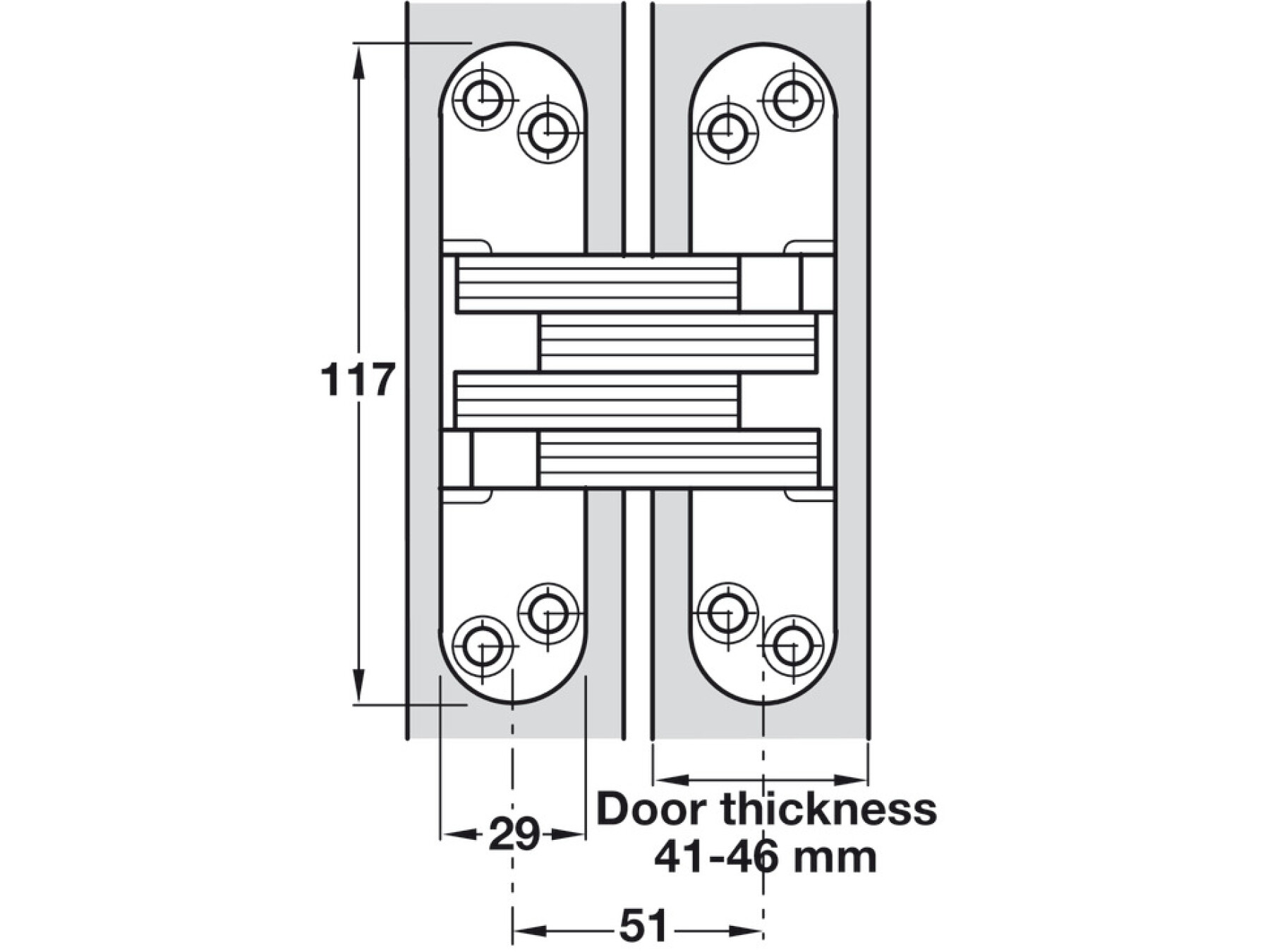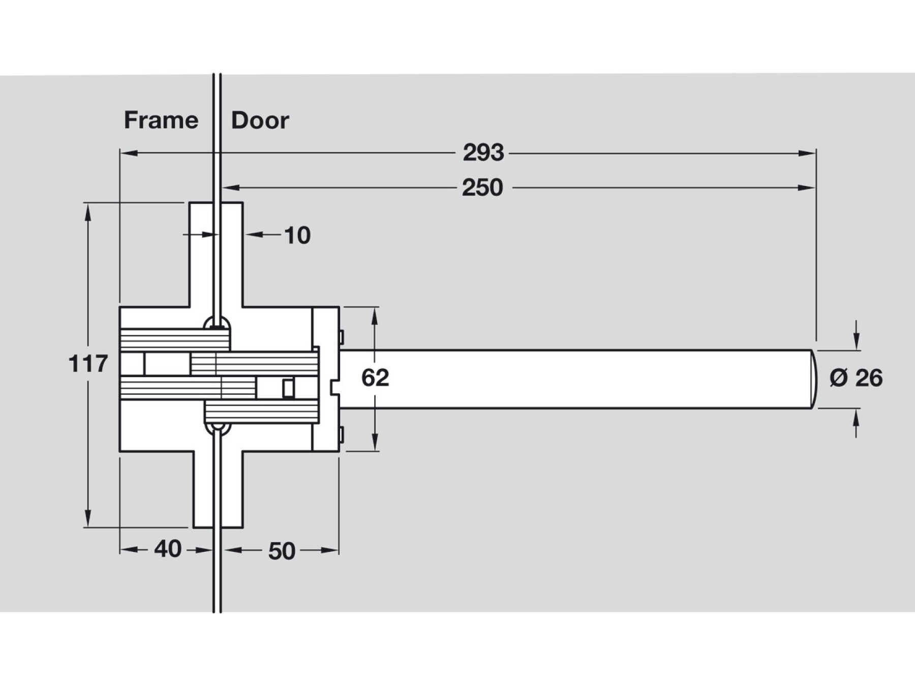 Door construction must allow for 240 mm depth of spring unit x Ø 25.5 mm