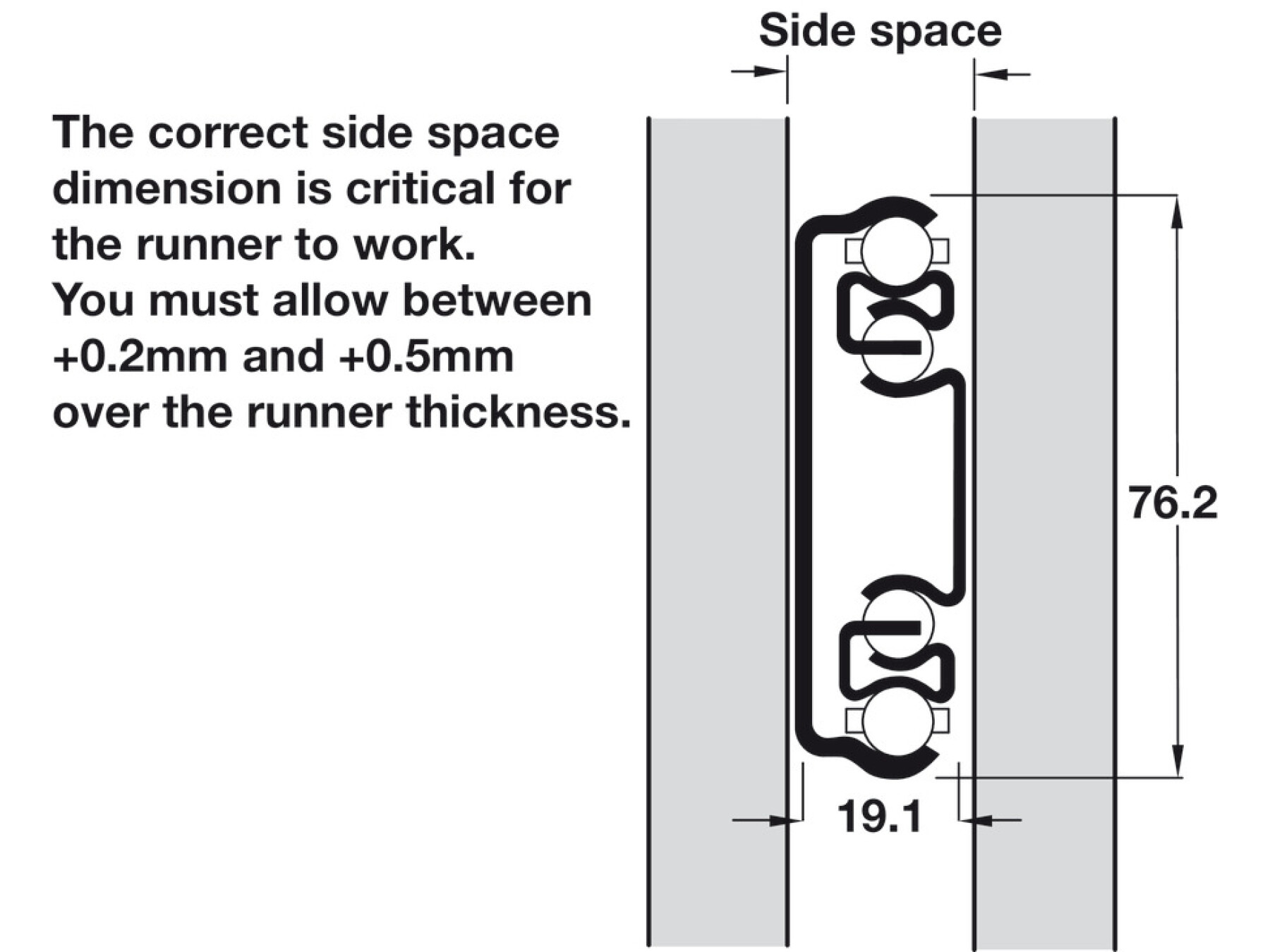 The load bearing capacity values specified in the table apply to side mounting only. The load bearing capacity is reduced by approx. 75% when surface mounted.