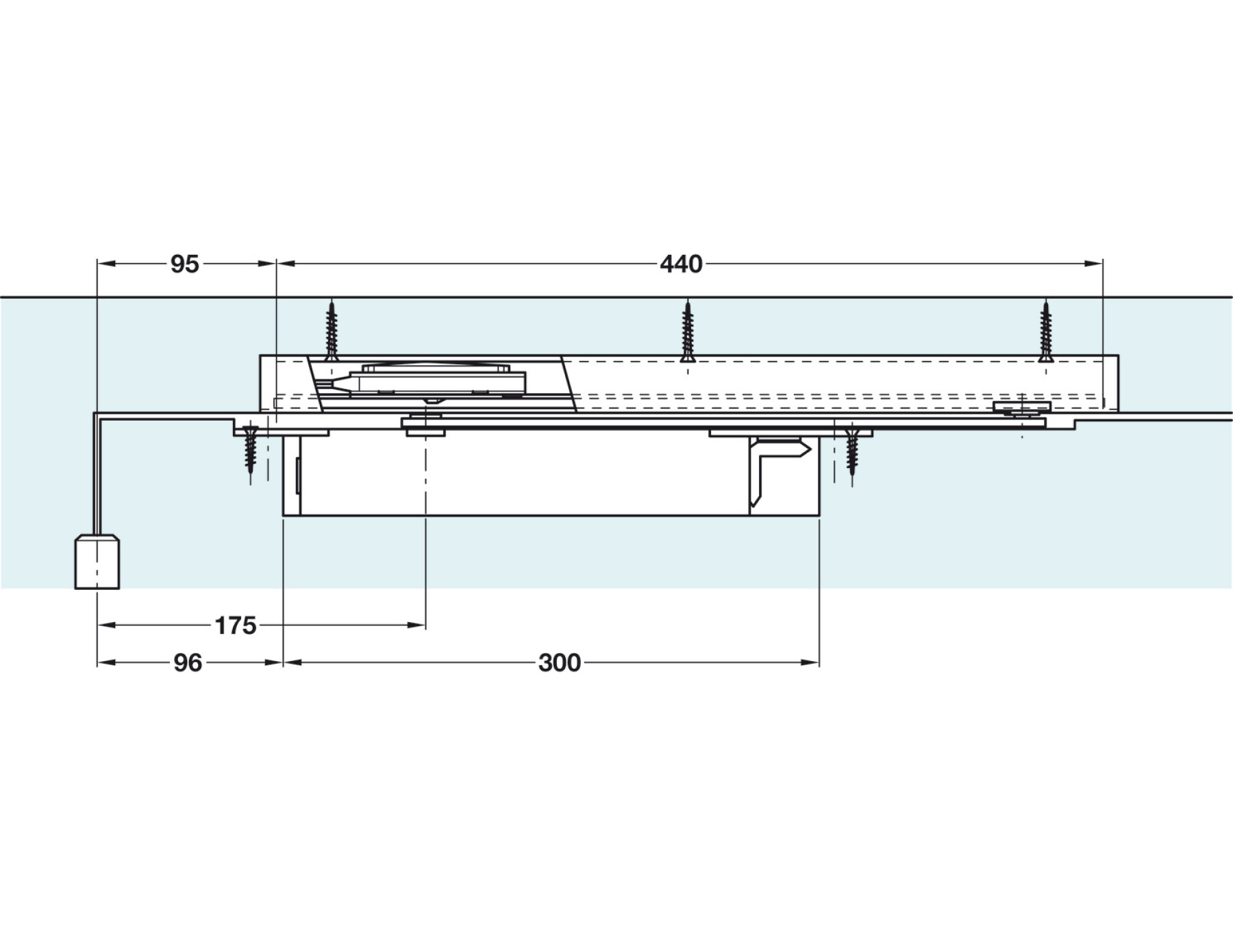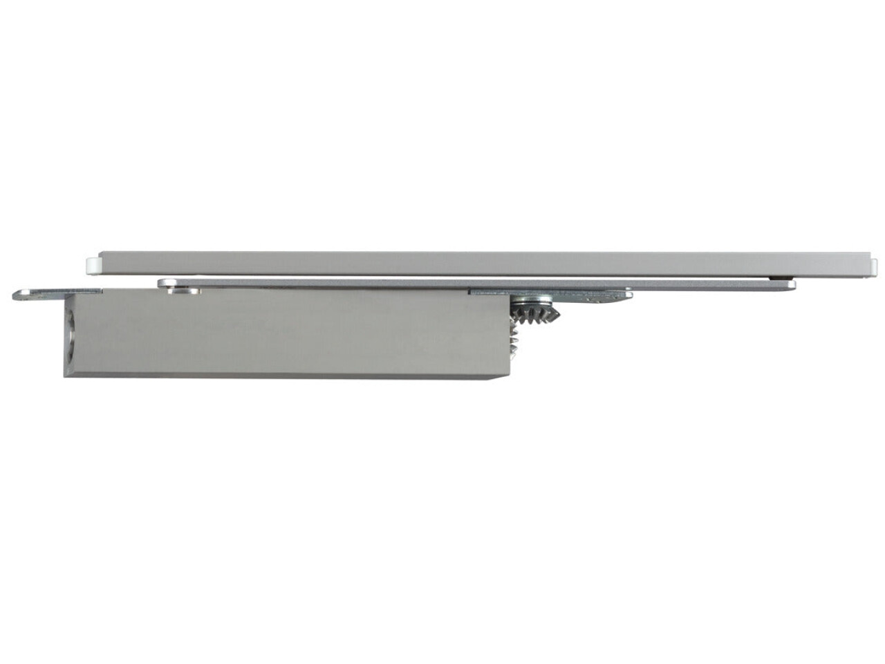 Specification:Concealed fixing cam action door closer with concealed guide rail arm for doors up to 1100 mm wide with adjustable closing force and latching action closing speed and adjustable hydraulic backcheck