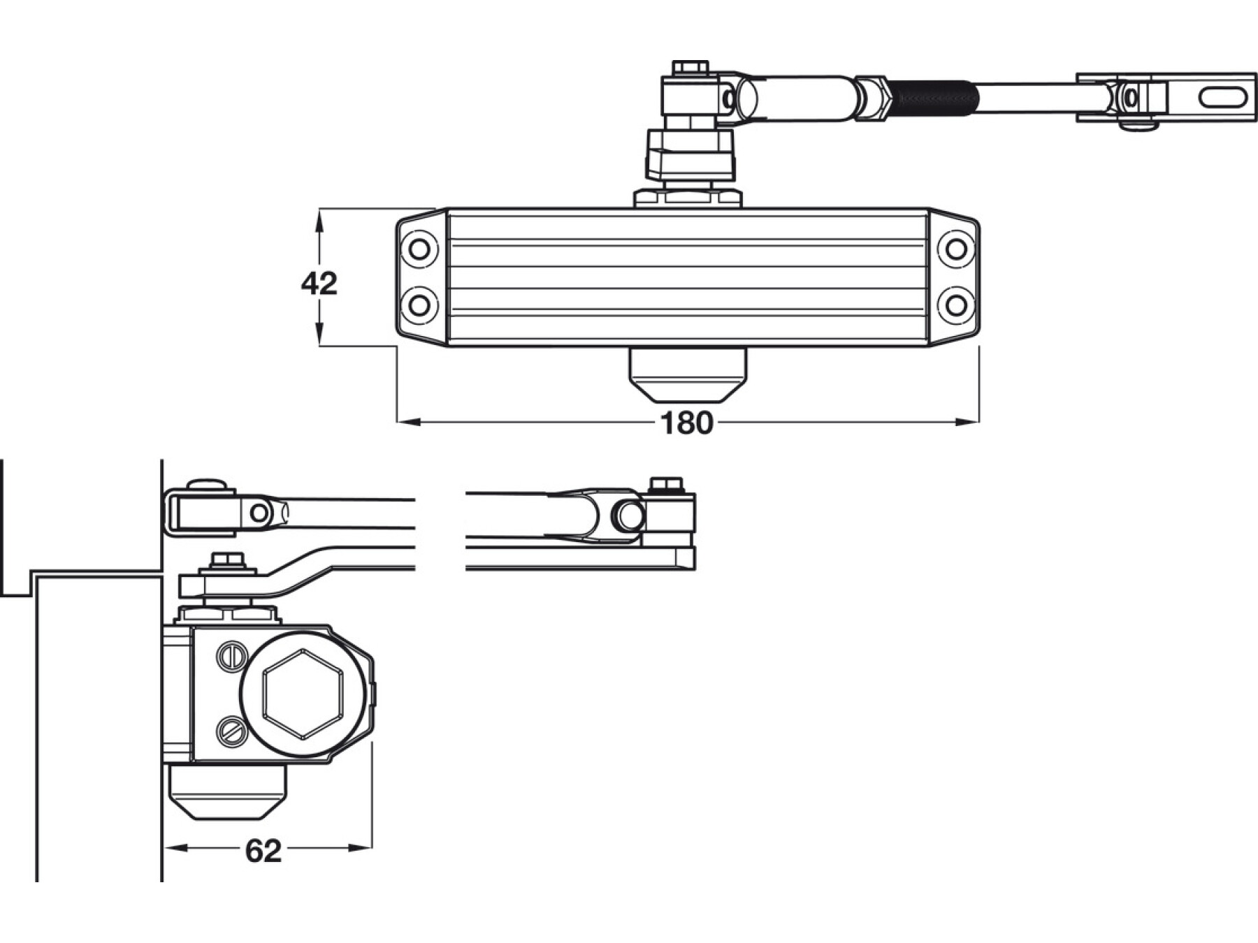 Parallel arm configuration (Fig 6) not suitable for fire door applications