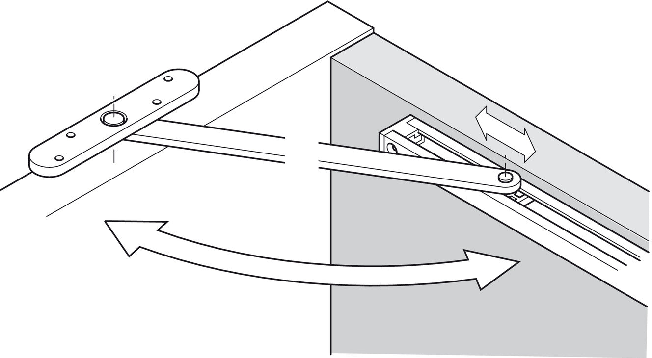 To suit outward opening doors, push sideReversibleCan be used with or without hold-open featureLimit angle 90° to 150°