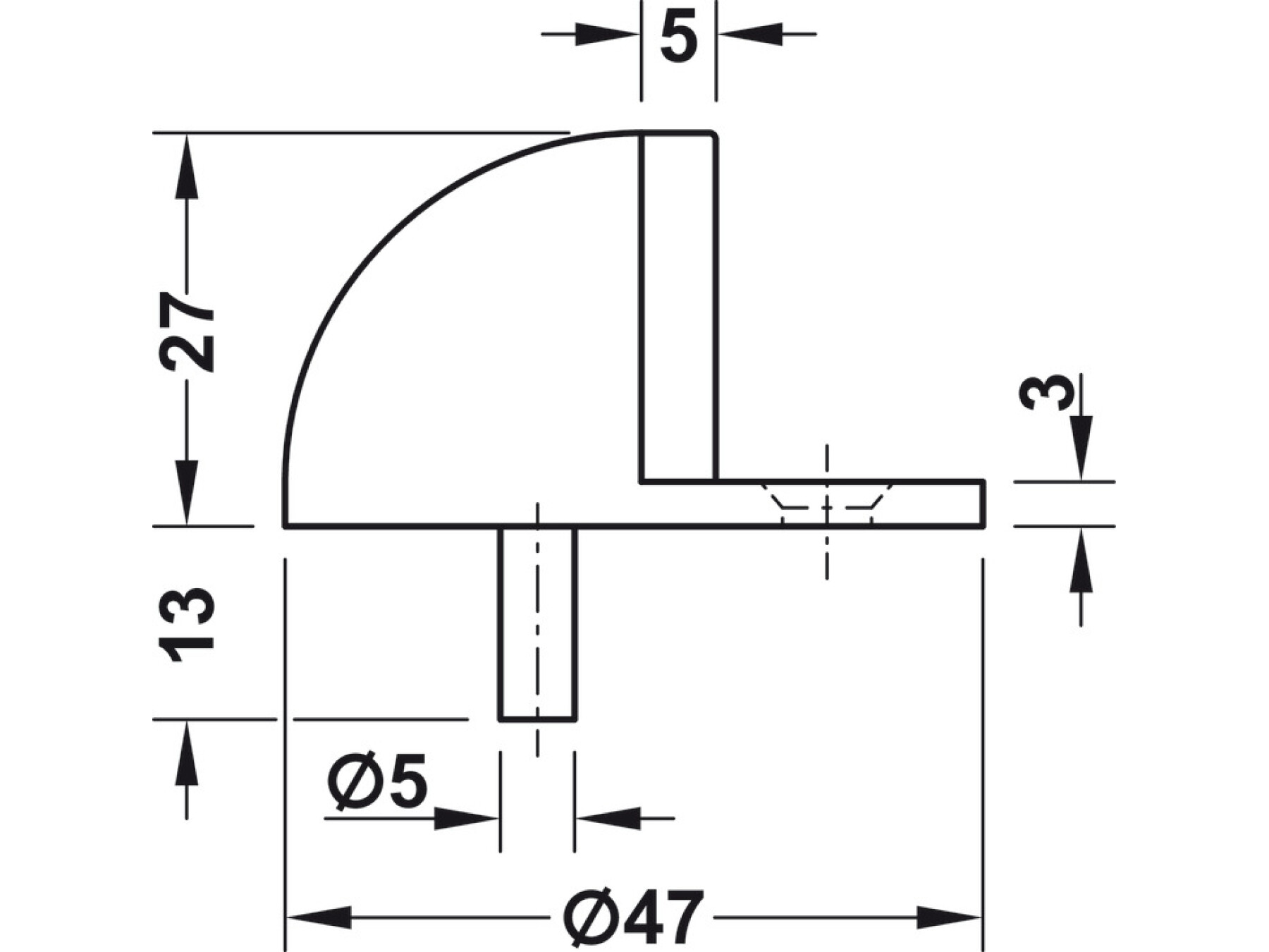 The product is sized for floor mounting. It has a 47 mm diameter and a 27 mm height, with the floor stop sized to suit the stated D45 mm specification. Checking these measurements against your door and layout helps ensure the correct fit.