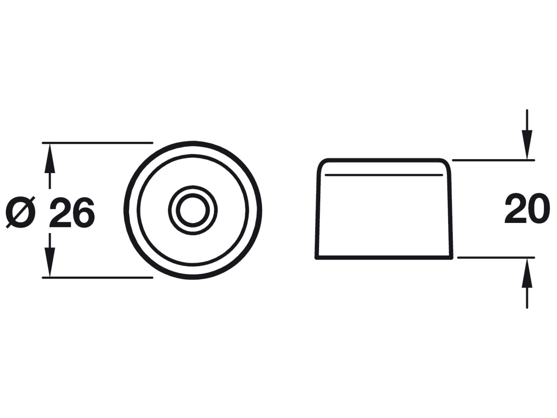 Door Stop, Floor Fixing, Ø 26 mm, Plastic