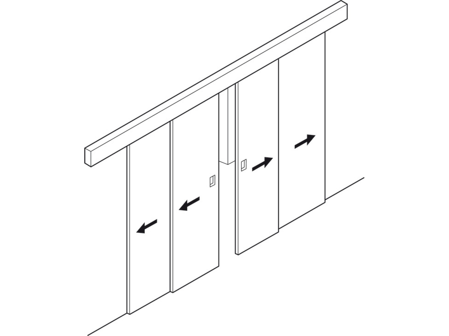 Top hung system, for 4 doors, the Telescopic 40/4 model is built to handle up to 40 kg per door and supports large door dimensions—making it ideal for both residential upgrades and commercial applications. With a door width of 500–800 mm and a maximum door height of up to 4,000 mm, it offers versatility for modern interior designs.