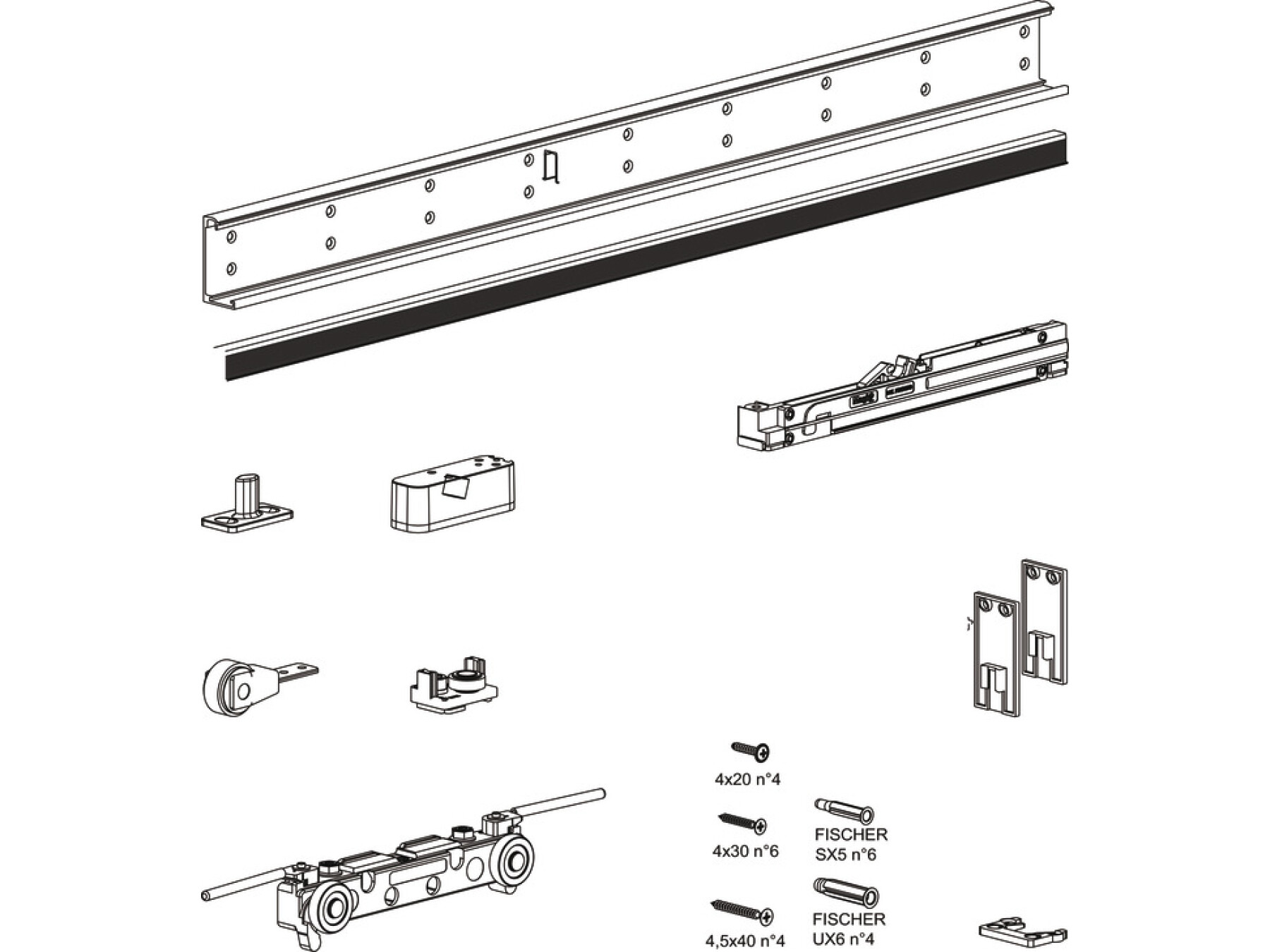 Fitting set for one door consists of: