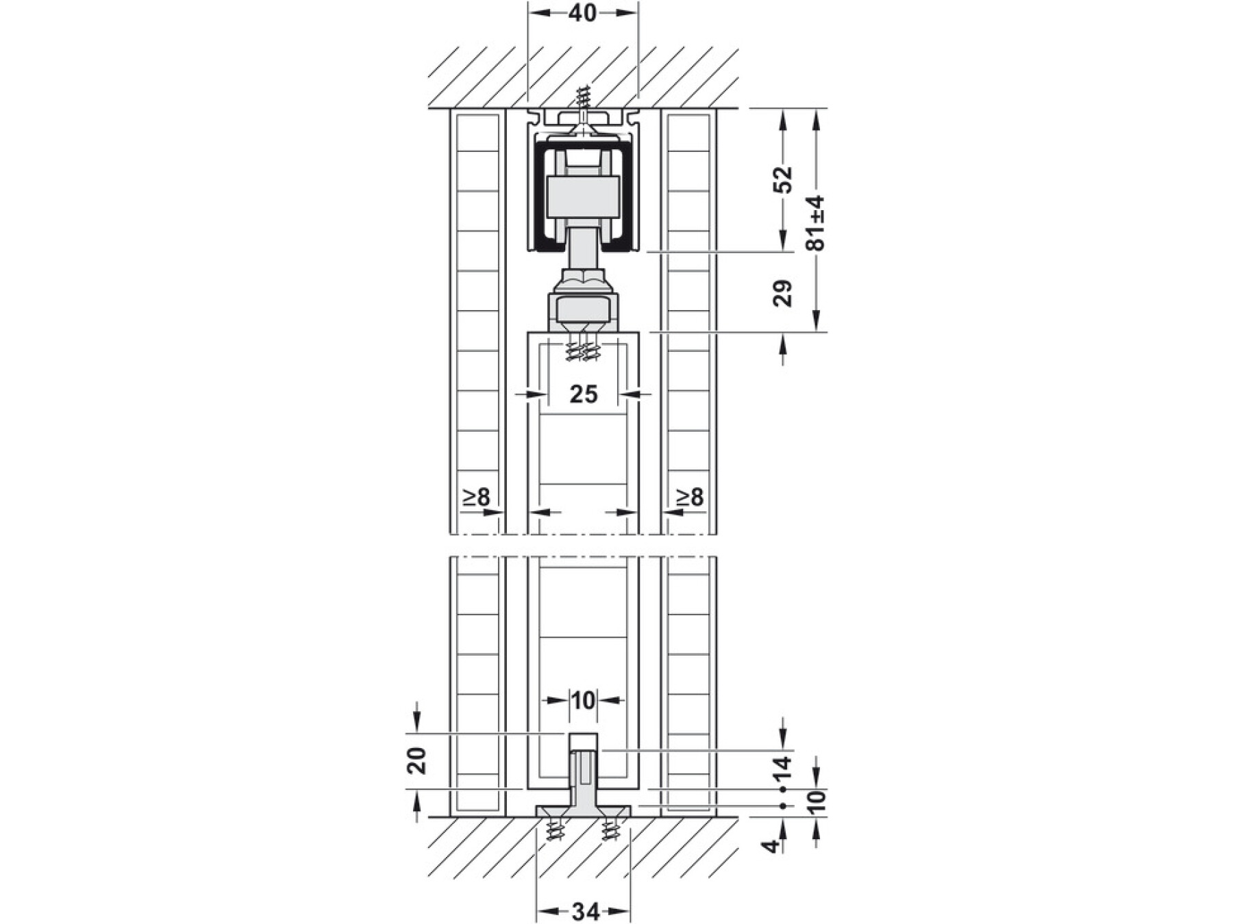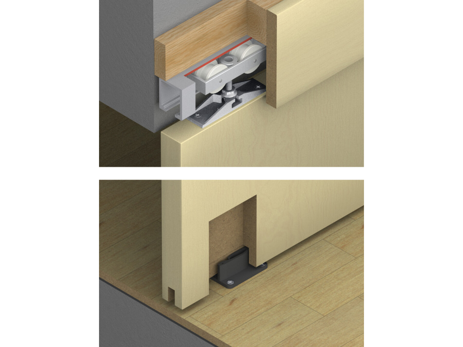 Junior 80 is a vertically adjustable sliding door fitting for interior doors exceptionally light and silent action
