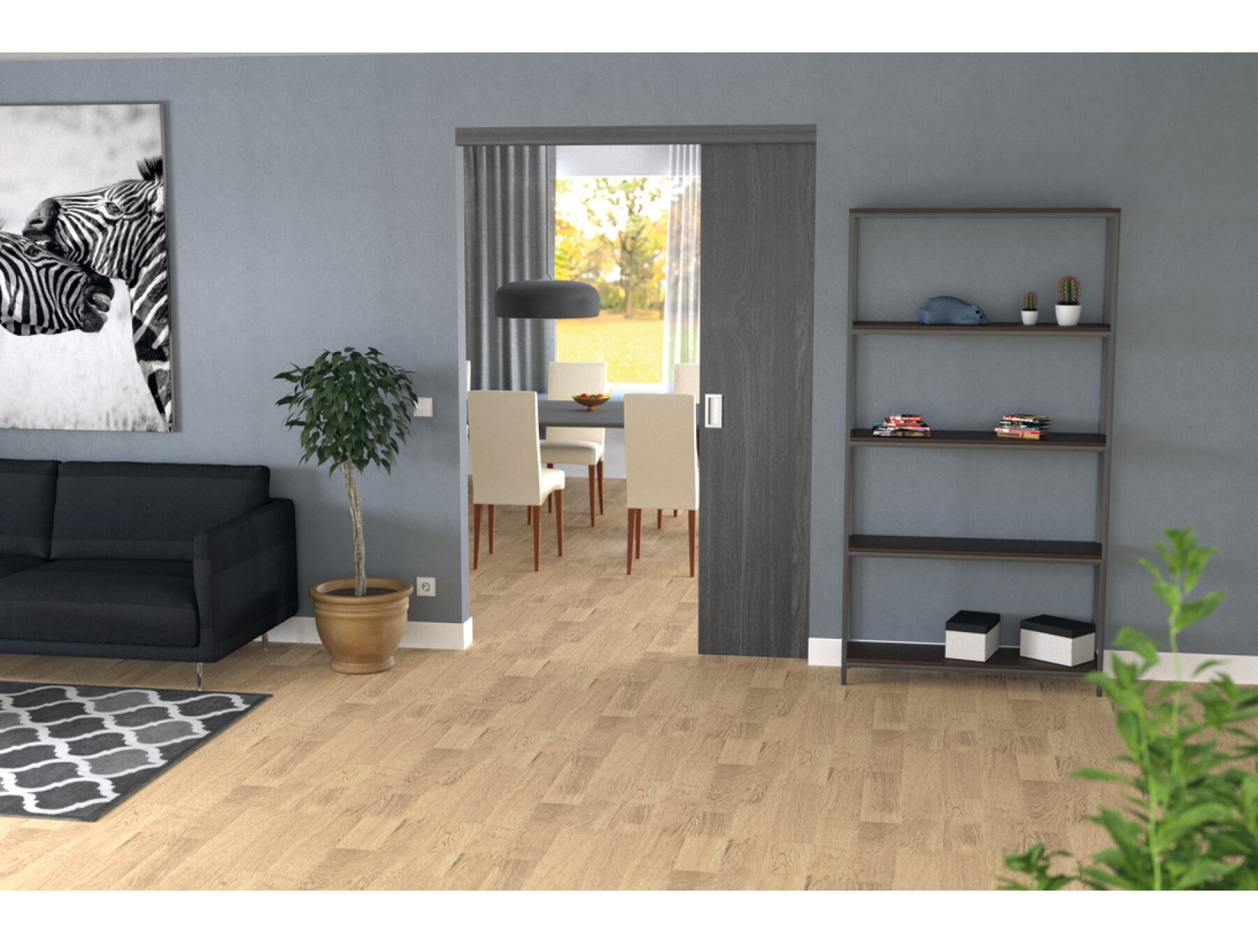 The max. door width for the pocket door solution is 1,500 mm.