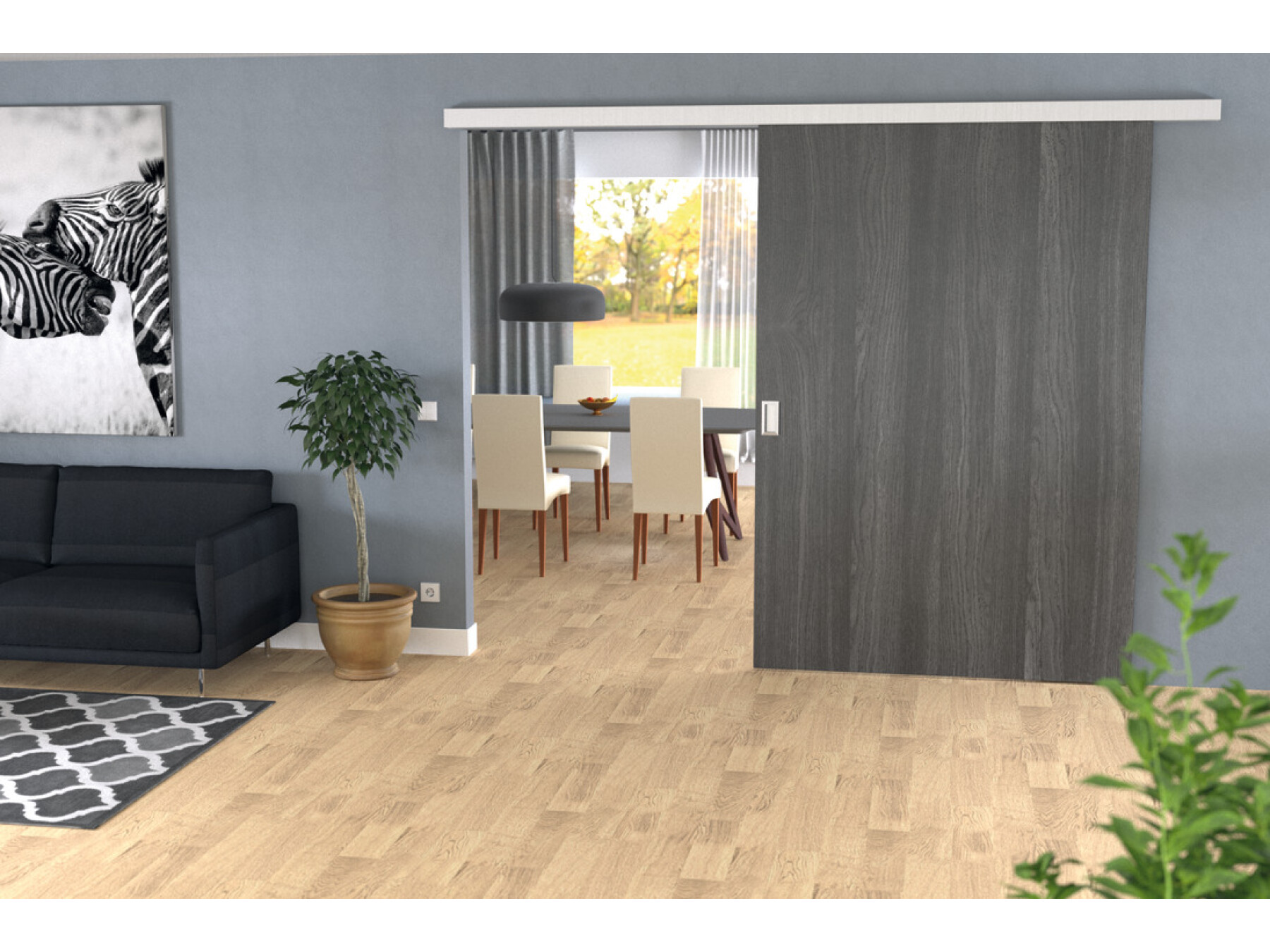 The max. door width for the pocket door solution is 1,500 mm.