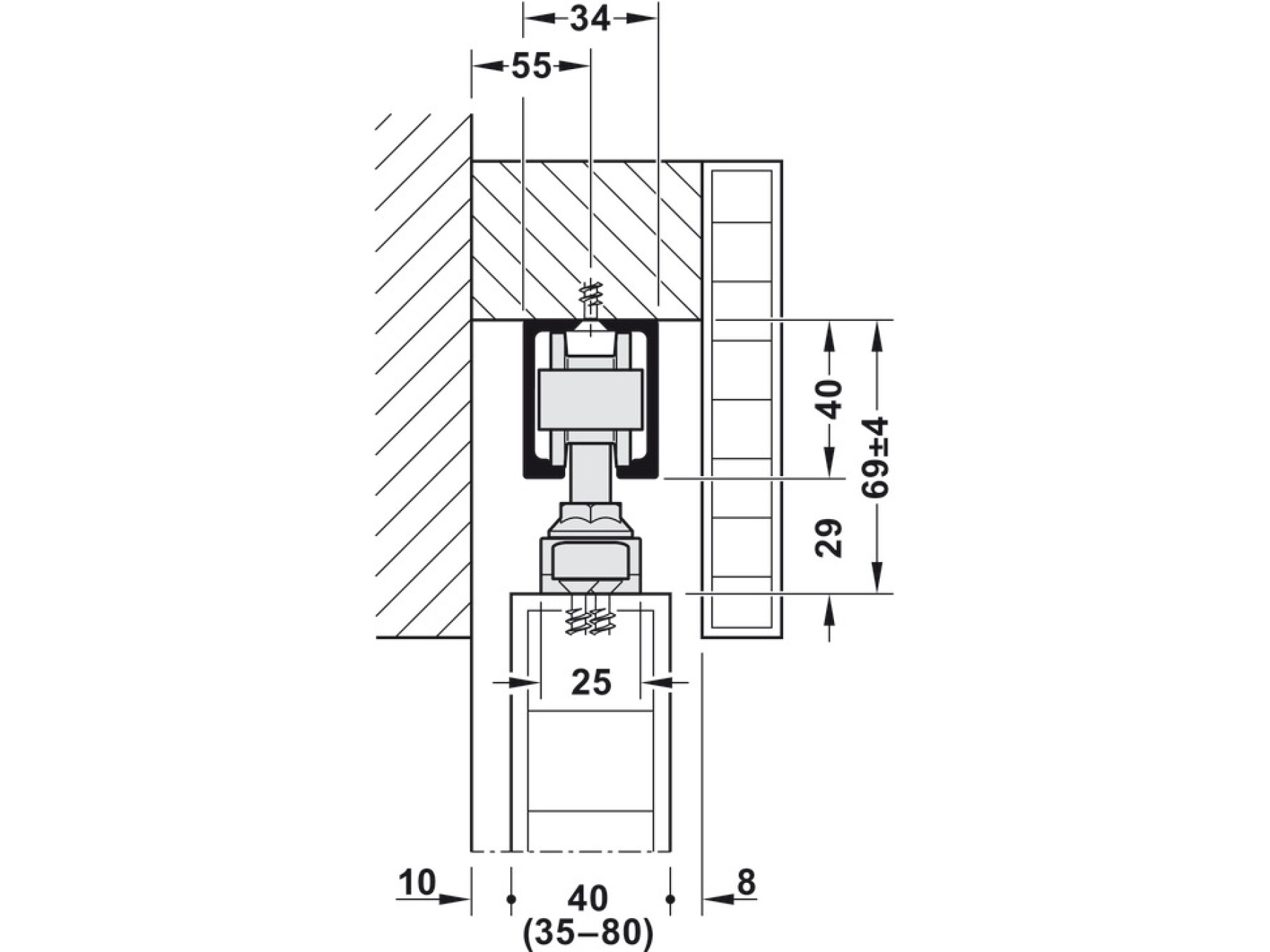 Junior 80 is a vertically adjustable sliding door fitting for interior doors exceptionally light and silent action