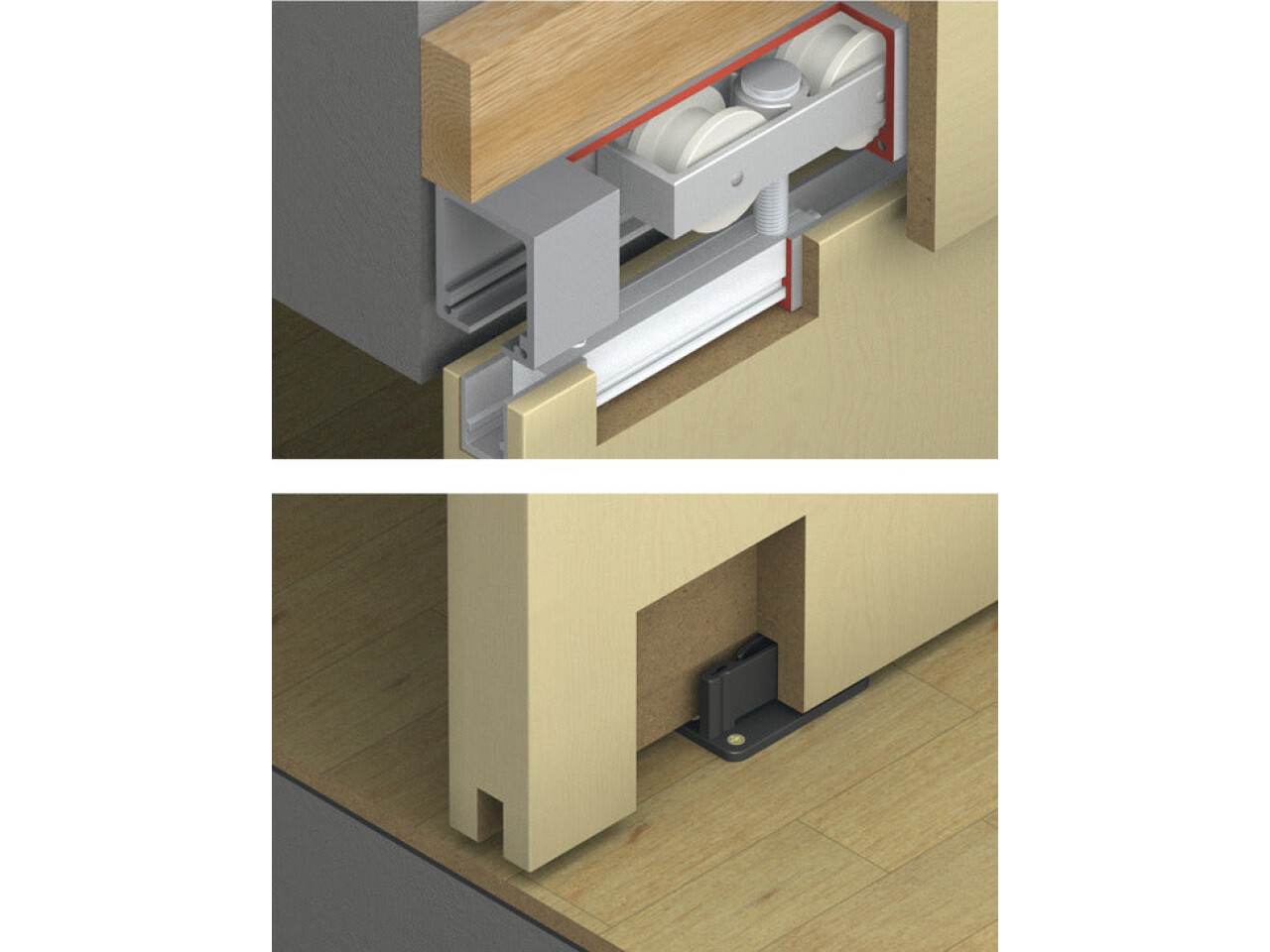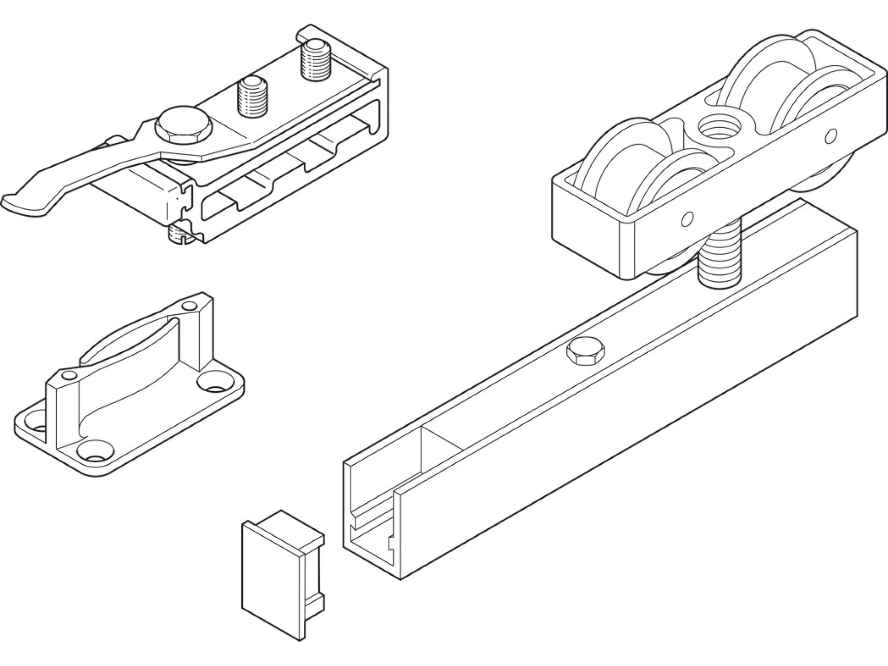 Choose Fitting Set, for Sliding Interior Doors, Hawa-Junior 160/B. today for a robust, low-headroom top hung solution—then add the required tracks, accessories, and fixings separately to complete your installation.