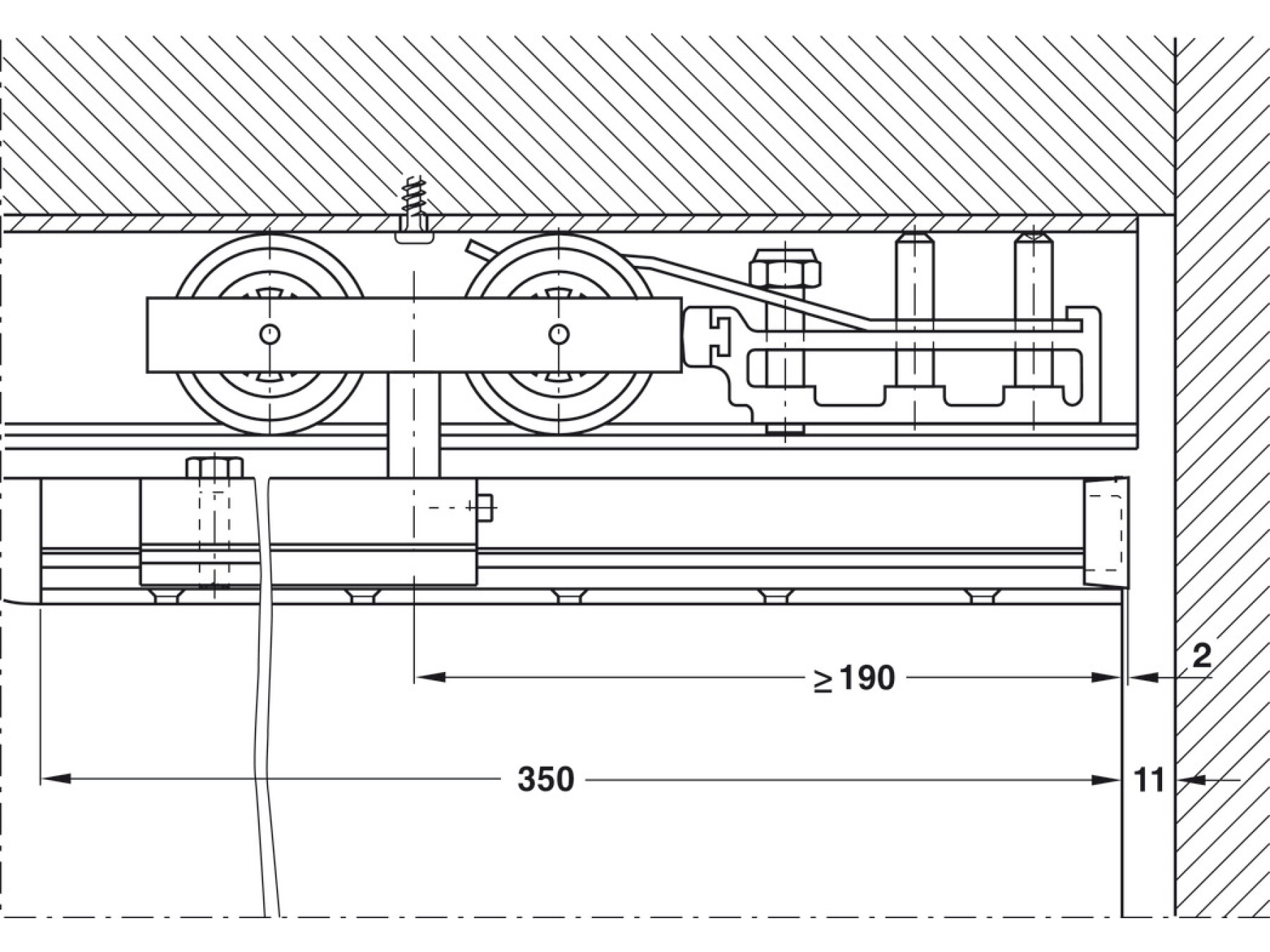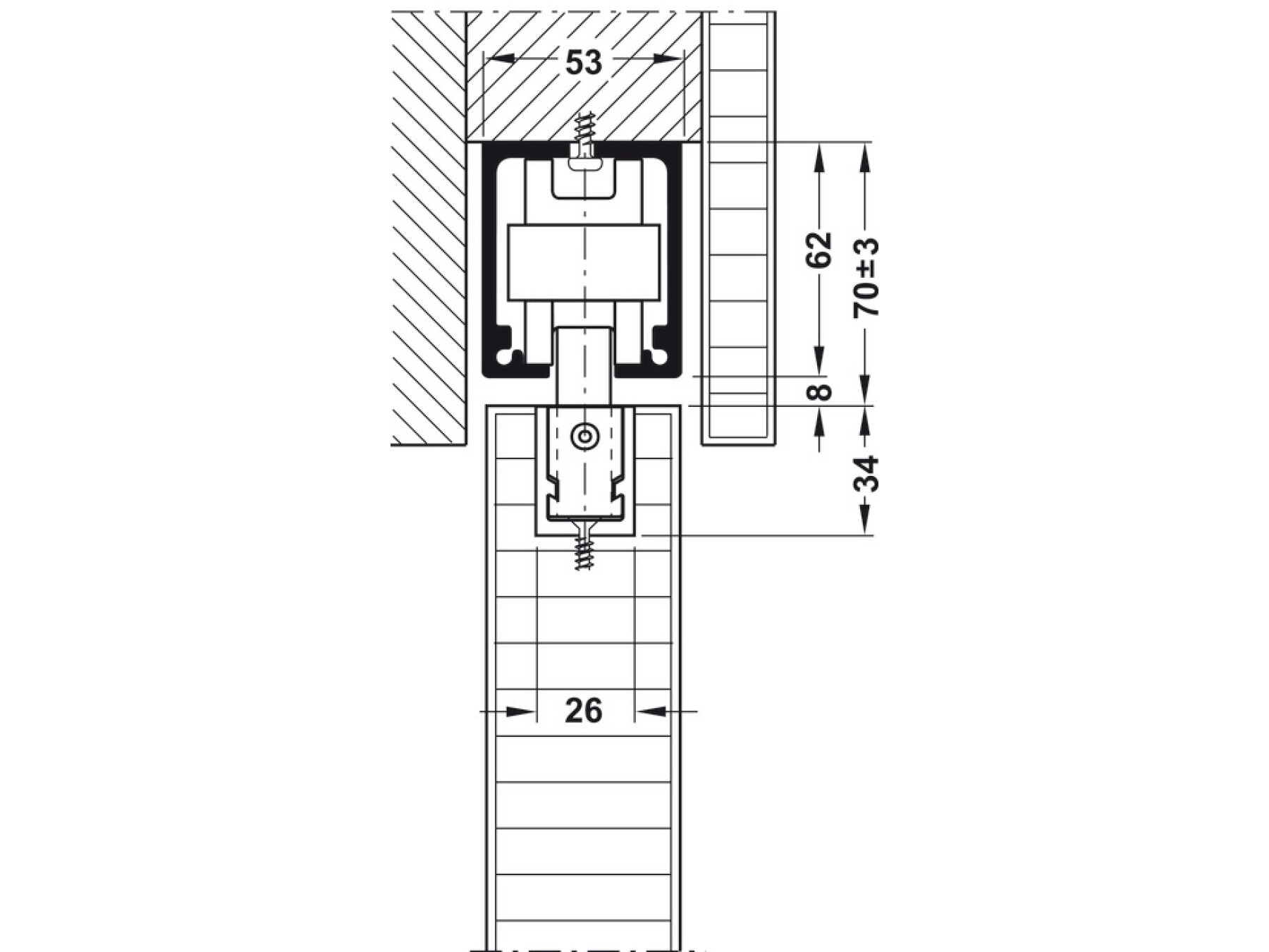 For a clean, professional finish, the set is configured for ceiling installation and wall mounting, using suspension with recessed support profile. Door processing is supported with a recessed approach, making it a smart choice for modern, minimal door designs. You can also benefit from height adjustment ±3 mm for precise alignment after installation.