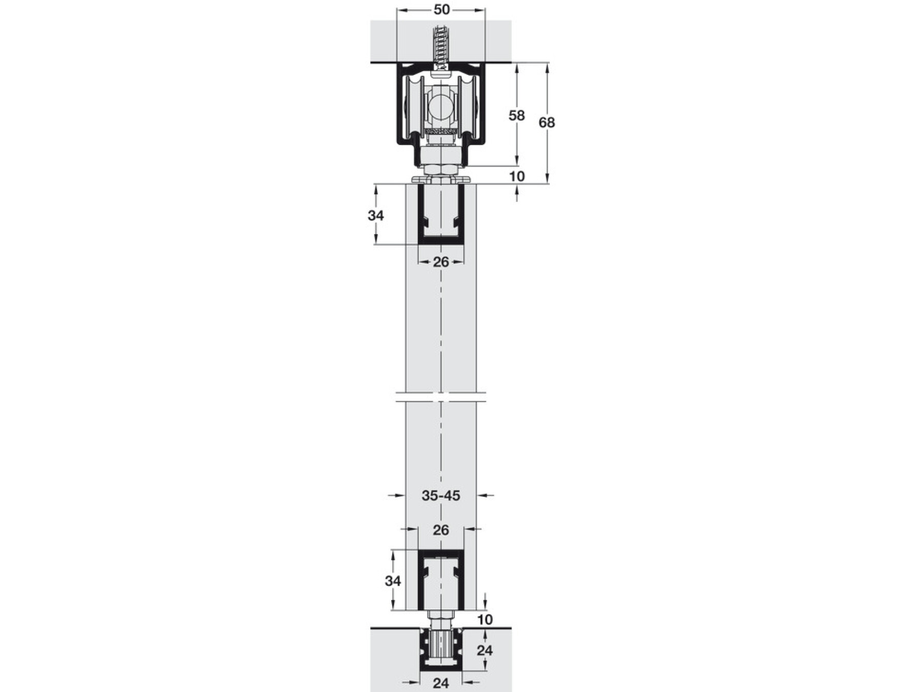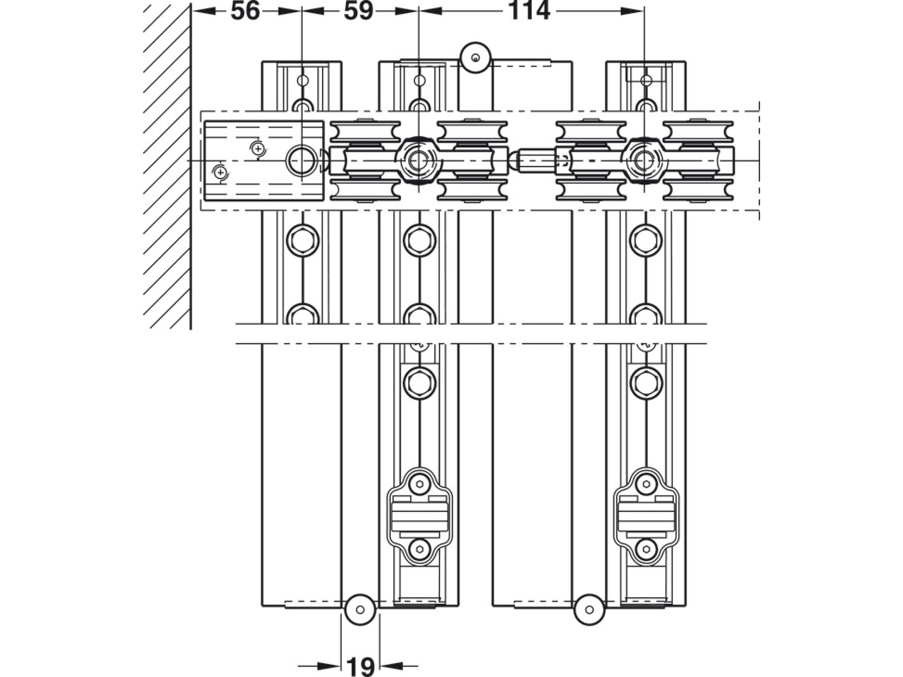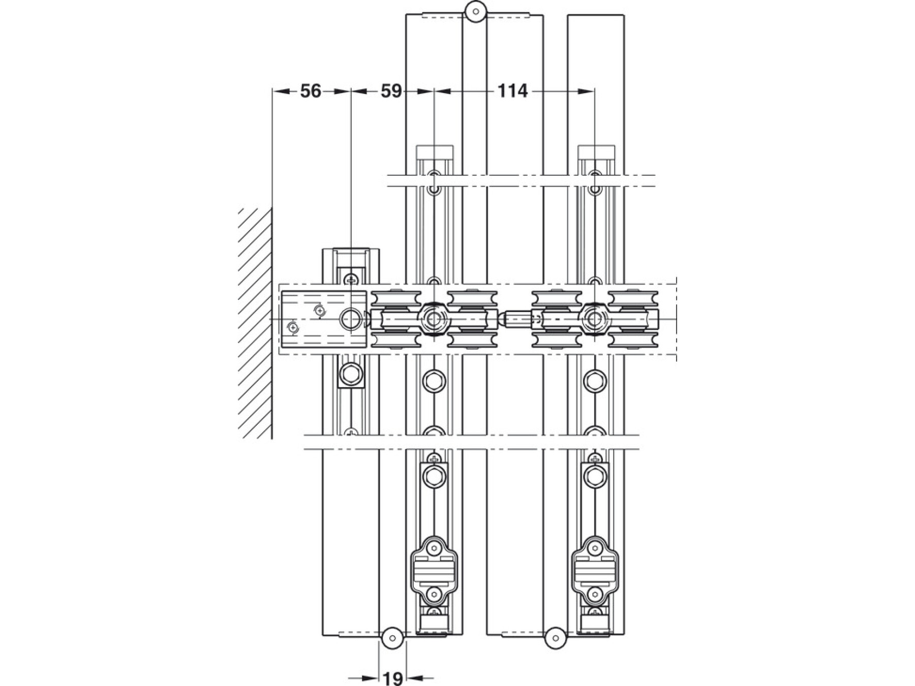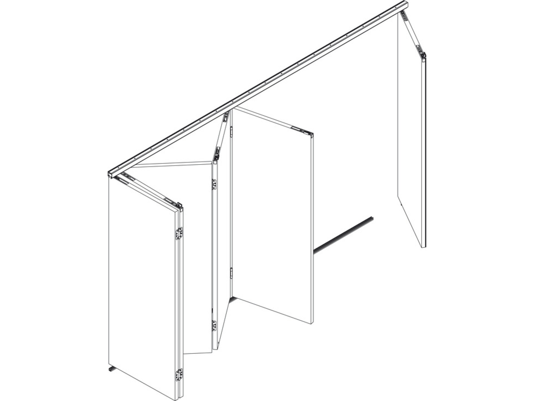Bottom guide tracks must be used for Hawa-Variofold systems. For systems with 2 doors on both sides and up to a width of max. 3.6 m the bottom guide track is not required.