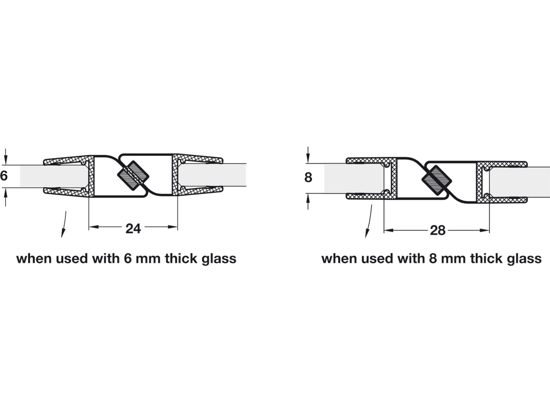 Suitable for toughened glass doors 6-8 mm thick, Transparent PVC finish