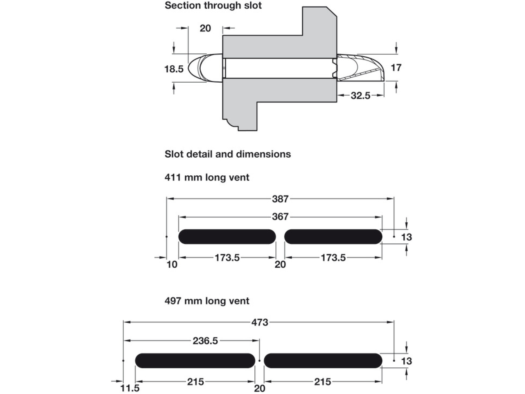 For use on 13 mm slot (see diagram)Deflects air up, down or both and straightSculptured finger recessPlease see... Read More