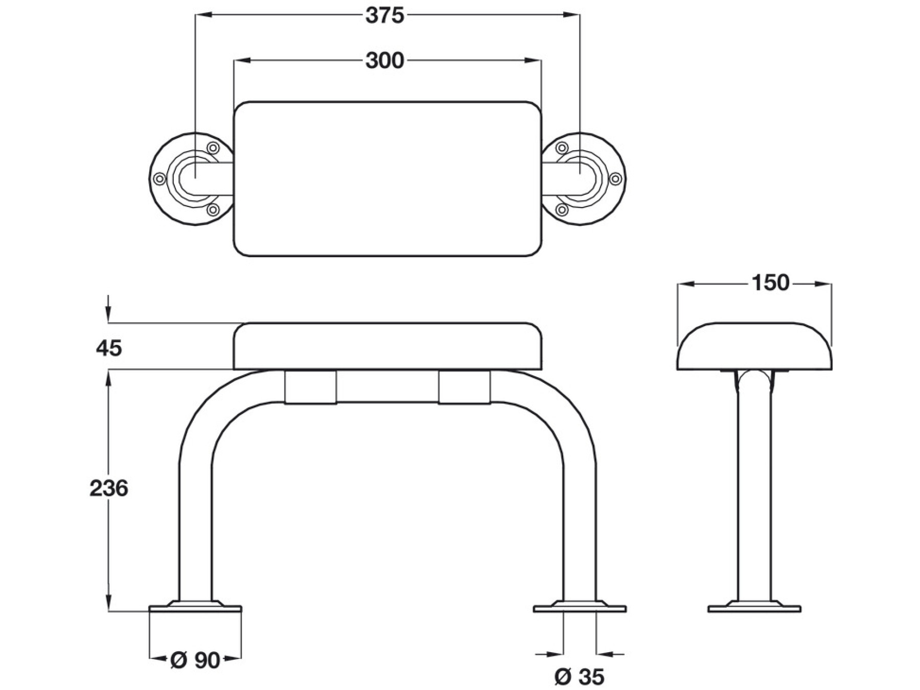 1 x Back rest rail with cushion