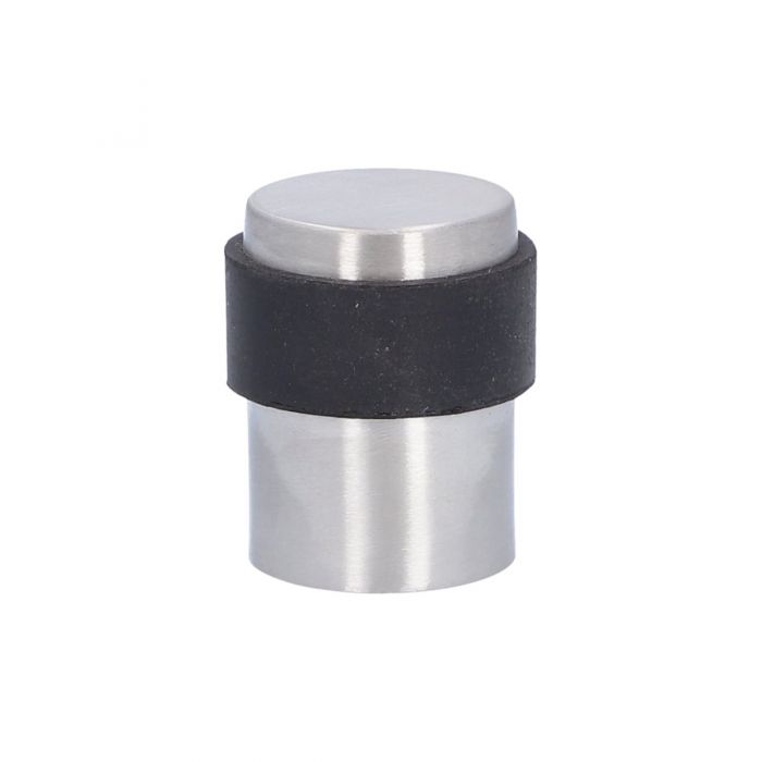 The Stainless Steel Floor Mounted Flat Top Cylinder Doorstop with a black rubber stopper. These door stops have a simple and traditional cylindrical design that has been created from stainless steel for a robust and hard-wearing door stop that is also economical.