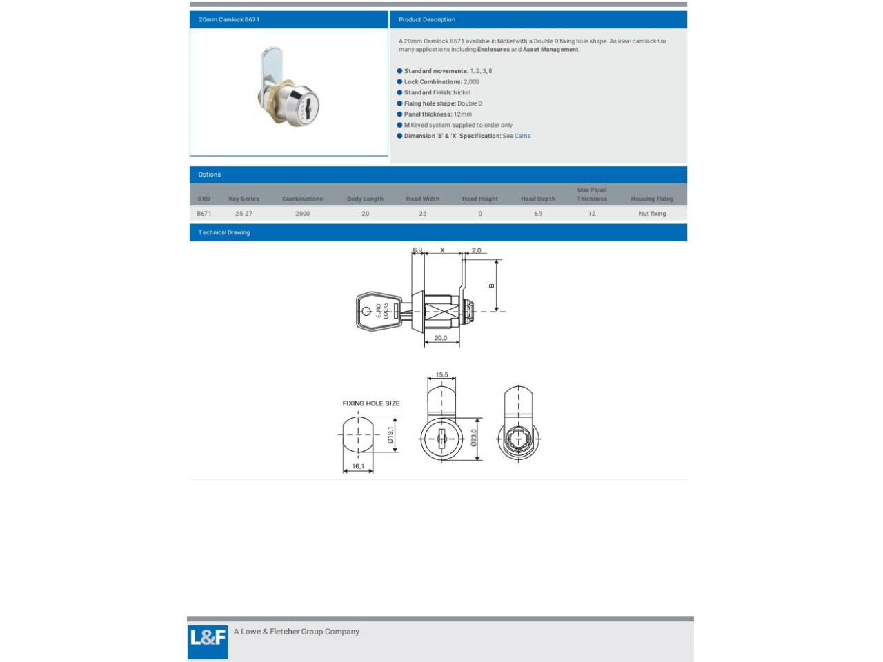 Use the product part number B671 and the size reference 20MM to confirm compatibility. If your cabinet is being upgraded or repaired, it is also worth verifying the existing lock model or current mounting specification to ensure you receive the right fit for your furniture.